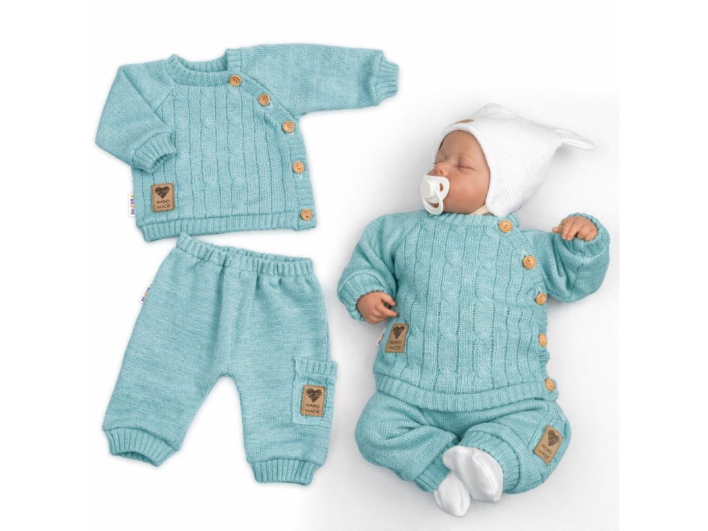 Rostoucí pletený svetřík a kalhoty s kapsou - Hand made mátová