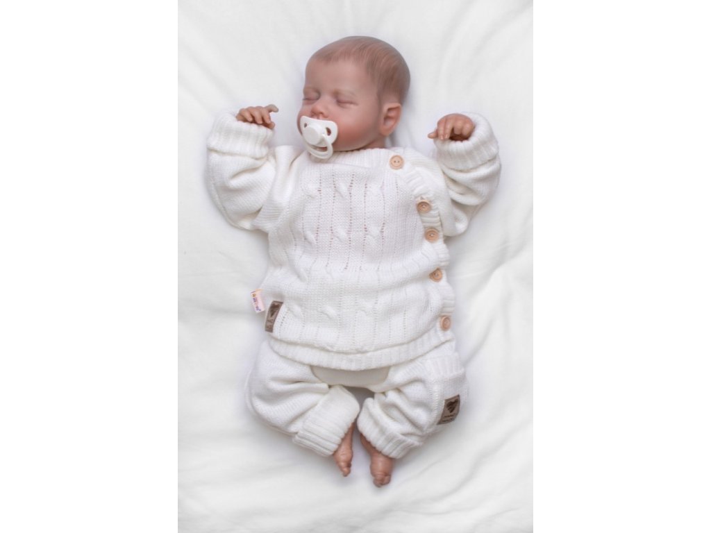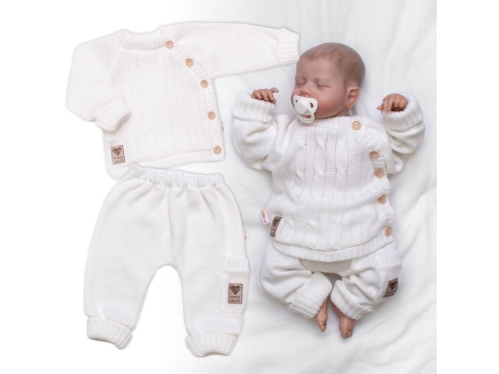 Tato pletená sada obsahuje svetřík a kalhoty. Je vhodná nejen na běžné nošení, ale i speciální příležitosti