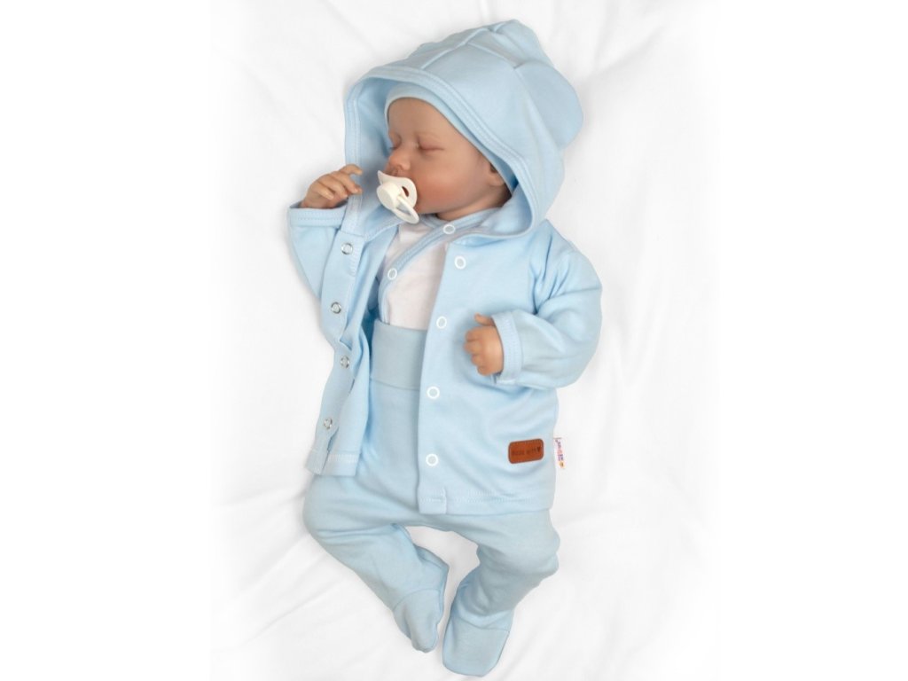 Mikina s kapucí a oušky - udrží miminko v teple a zároveň vypadá neodolatelně roztomile díky ouškům na kapuci. Kapuce je dvouvrstvá.