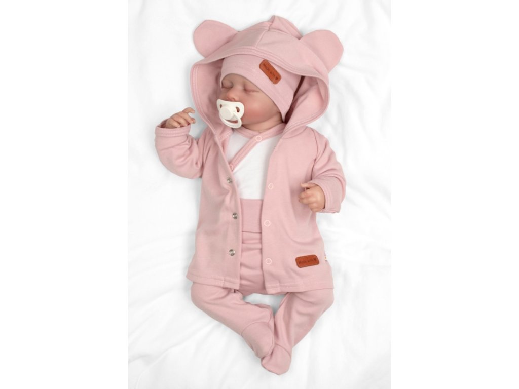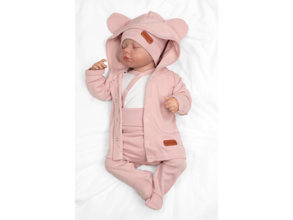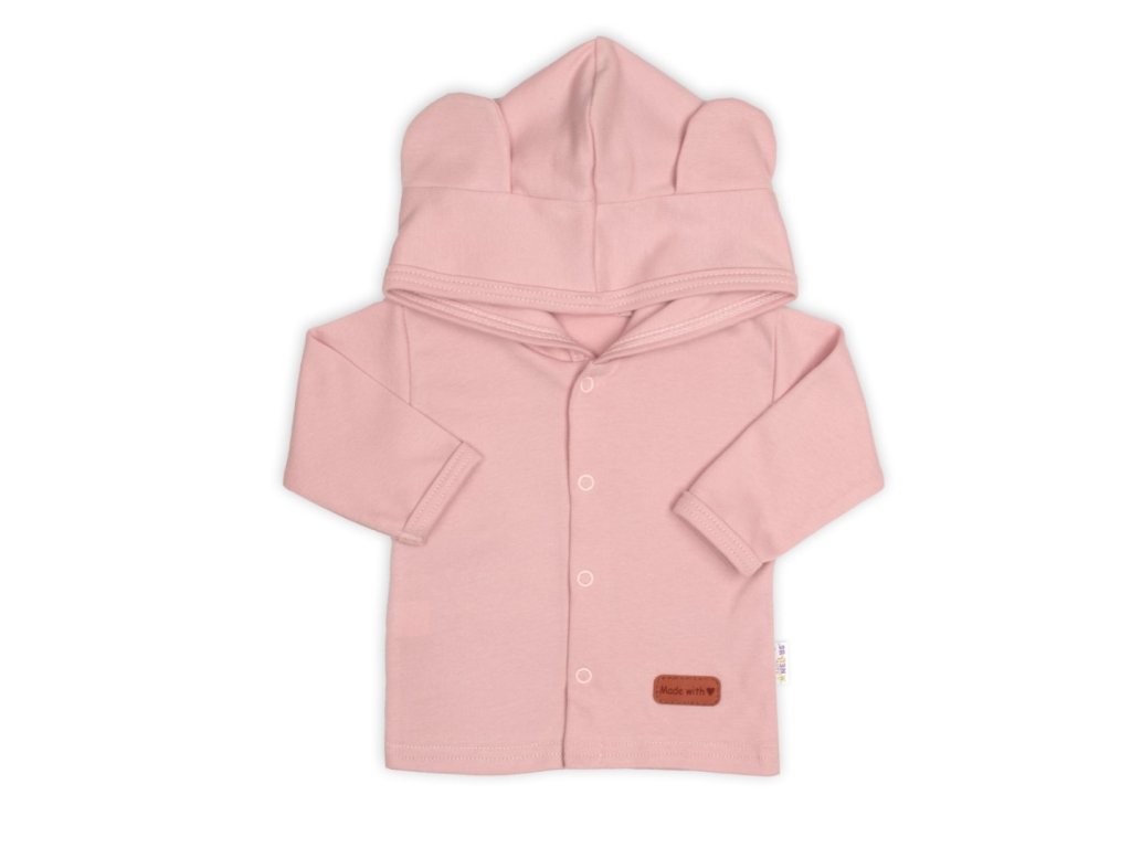 Mikina s kapucí a oušky - udrží miminko v teple a zároveň vypadá neodolatelně roztomile díky ouškům na kapuci. Kapuce je dvouvrstvá.