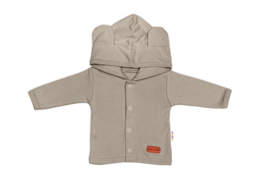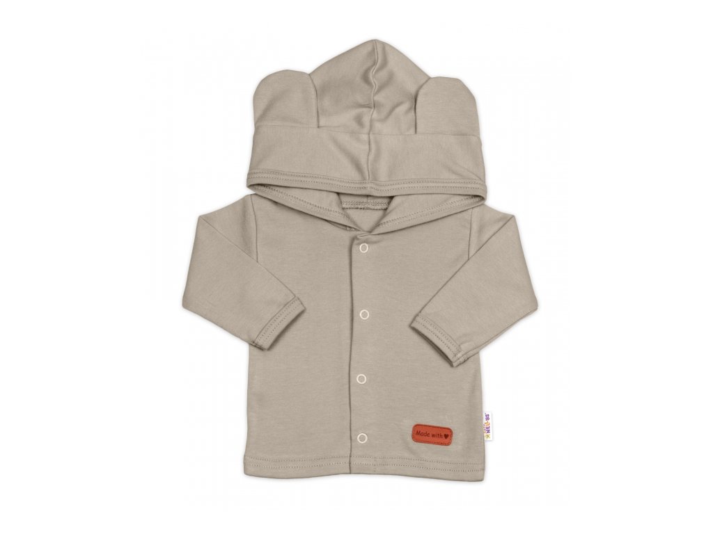 Mikina s kapucí a oušky - udrží miminko v teple a zároveň vypadá neodolatelně roztomile díky ouškům na kapuci. Kapuce je dvouvrstvá.