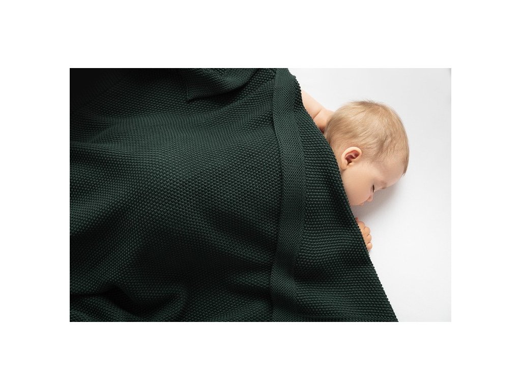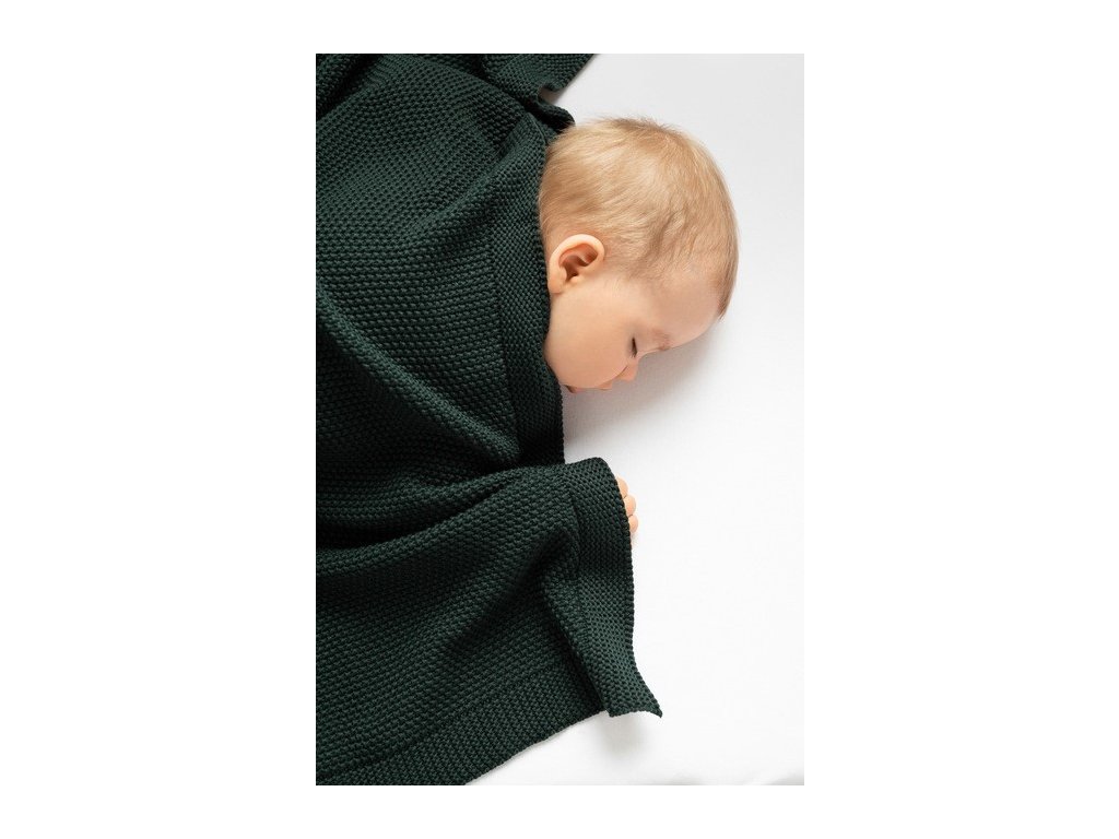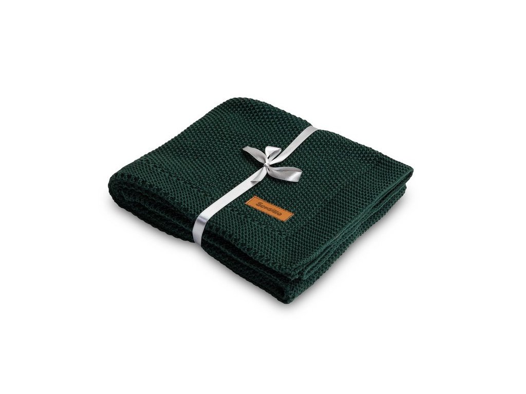 Bavlněná pletená deka - Tm. zelená