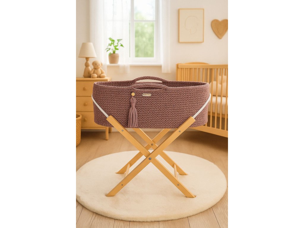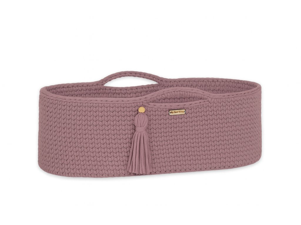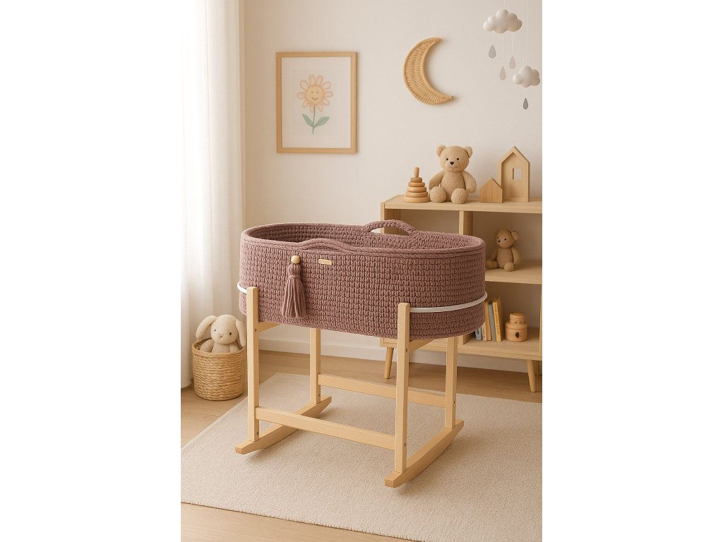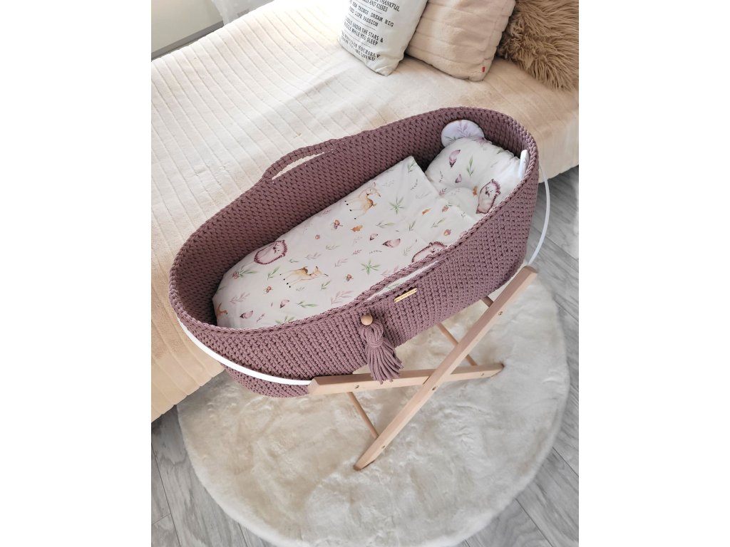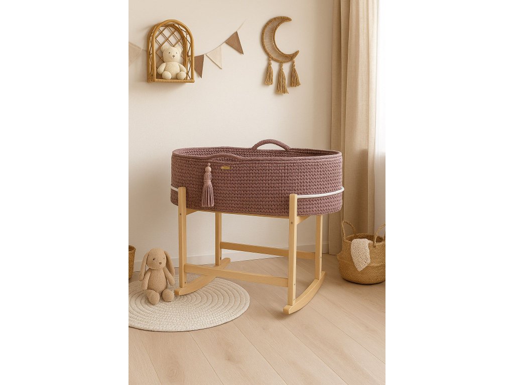 Koš je ručně vyrobený z bavlněného provázku. Díky svým malým rozměrům může košík doprovázet rodiče v každé místnosti. Bavlněná šňůra, ze které je košík utkán, je měkká, jemná a zároveň velmi stabilní. Háčkovaný steh použitý v košíku je mírně prolamovaný, díky čemuž je zajištěna správná cirkulace vzduchu. Díky rukojetím lze koš snadno přemisťovat a mít miminko vždy blízko sebe.