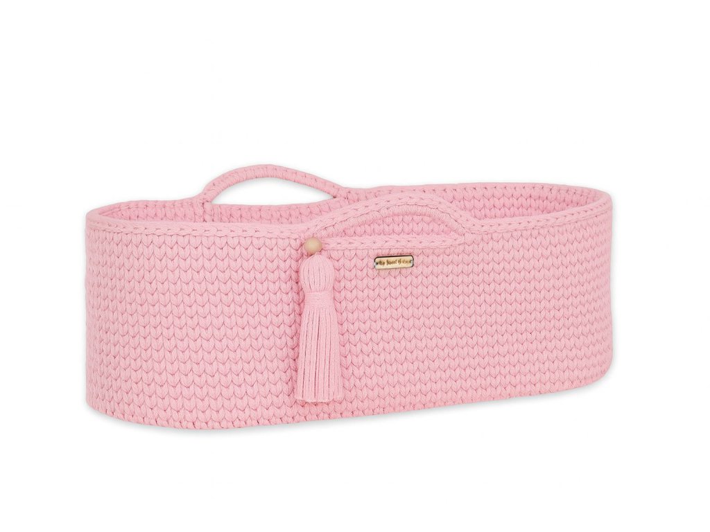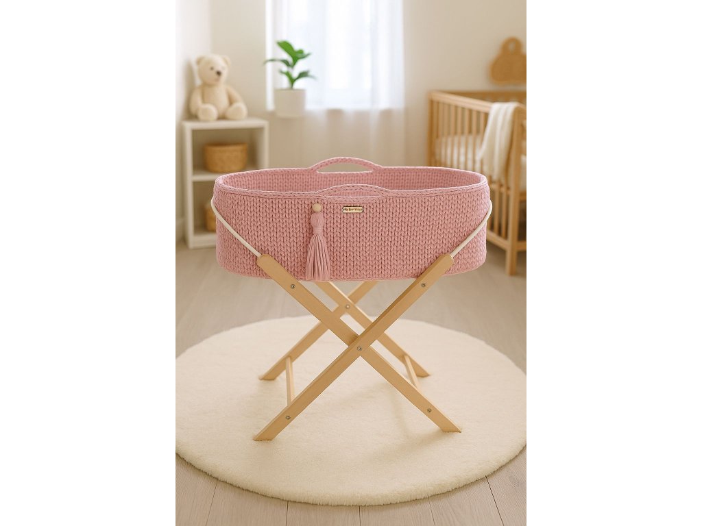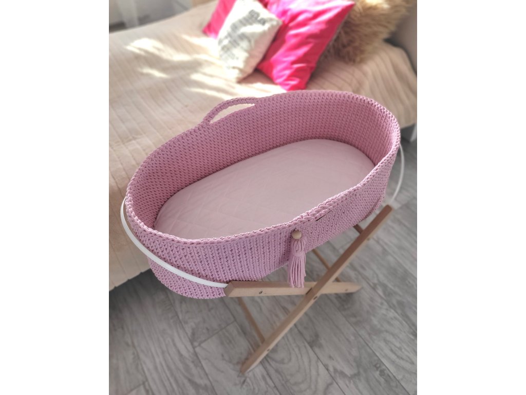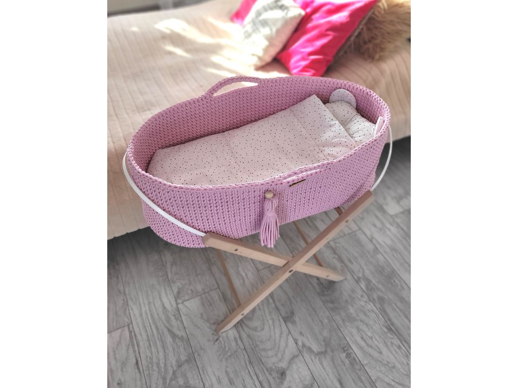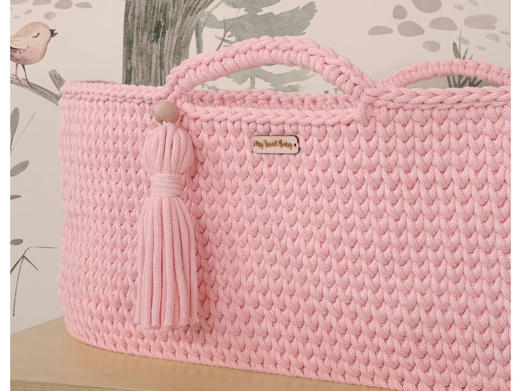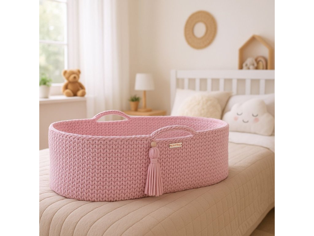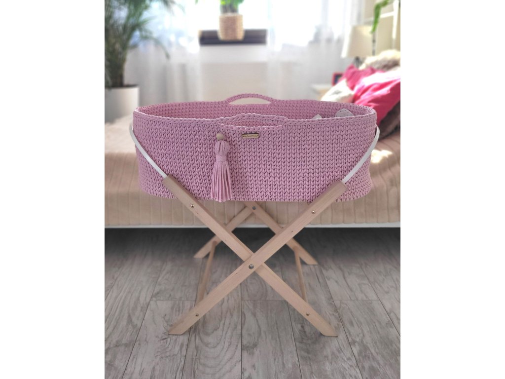 Koš je ručně vyrobený z bavlněného provázku. Díky svým malým rozměrům může košík doprovázet rodiče v každé místnosti. Bavlněná šňůra, ze které je košík utkán, je měkká, jemná a zároveň velmi stabilní. Háčkovaný steh použitý v košíku je mírně prolamovaný, díky čemuž je zajištěna správná cirkulace vzduchu. Díky rukojetím lze koš snadno přemisťovat a mít miminko vždy blízko sebe.