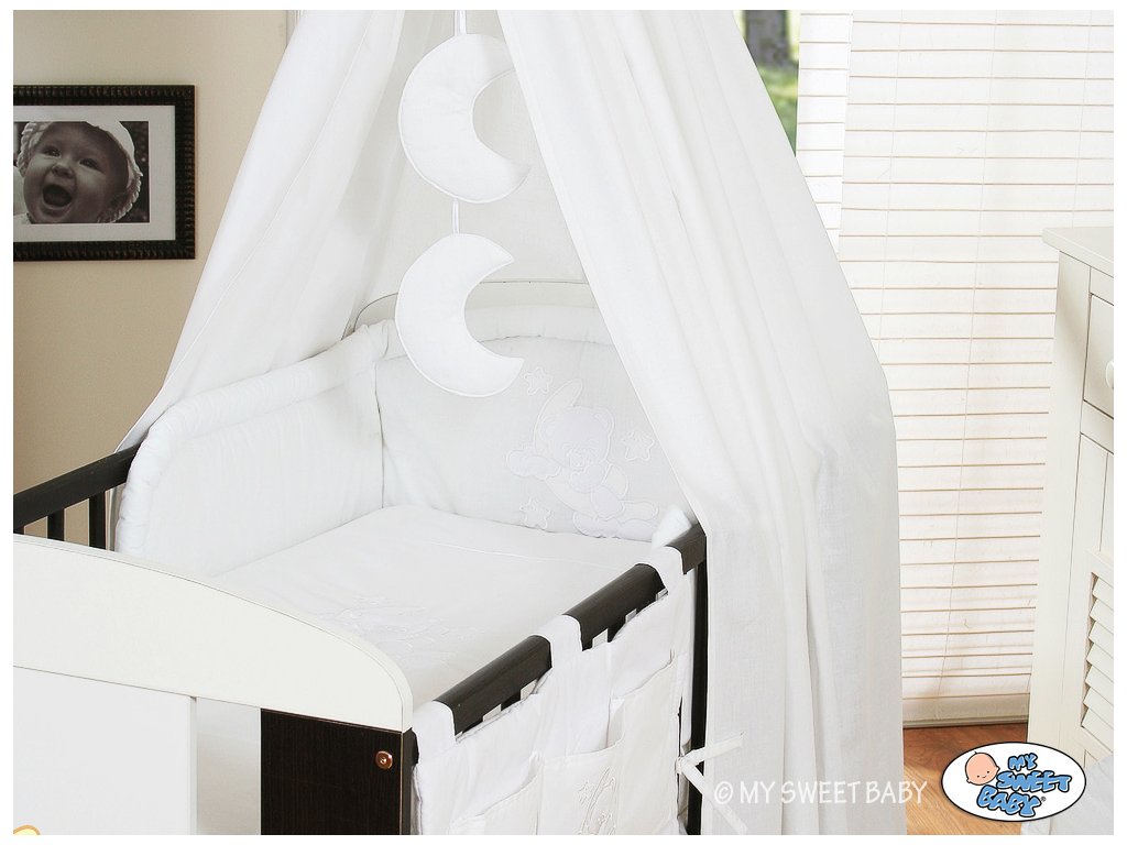 Sahají téměř až k zemi, pod spodní příčky postýlky, takže nespadnou dovnitř ani s matrací spuštěnou na nejnižší úroveň postýlky. Nebesa můžete upevnit na krátkou stranu postýlky, kdy budou krásně nařasené, ale lze je připevnit i na dlouhou stranu.