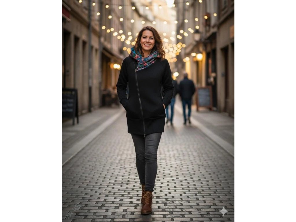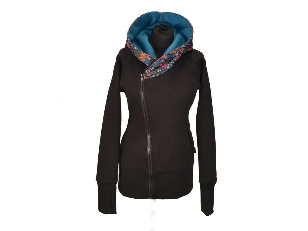 Dámská mikina počesaná - Křivák černá/petrolejová/bobule