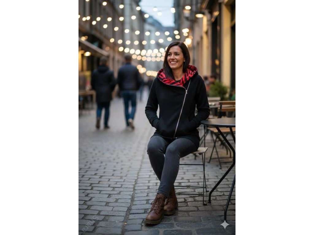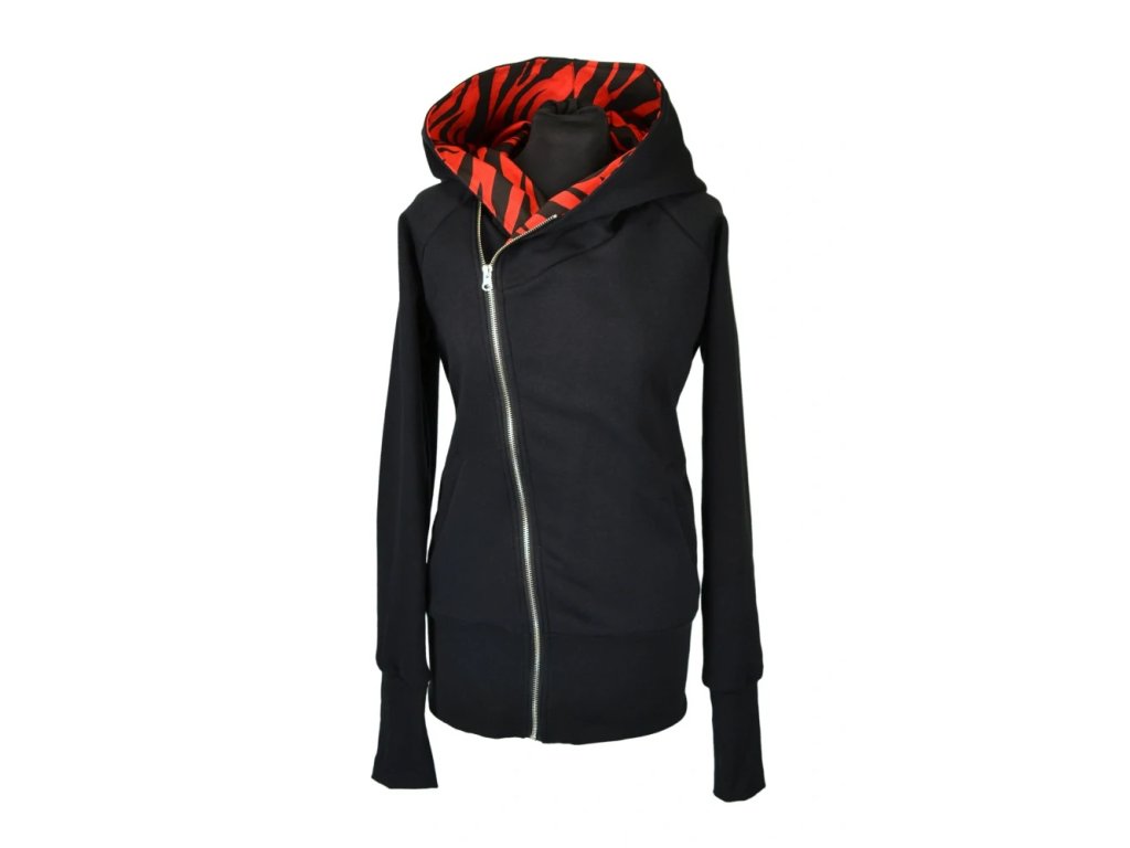 Dámská mikina počesaná - Křivák černá/zebra červená