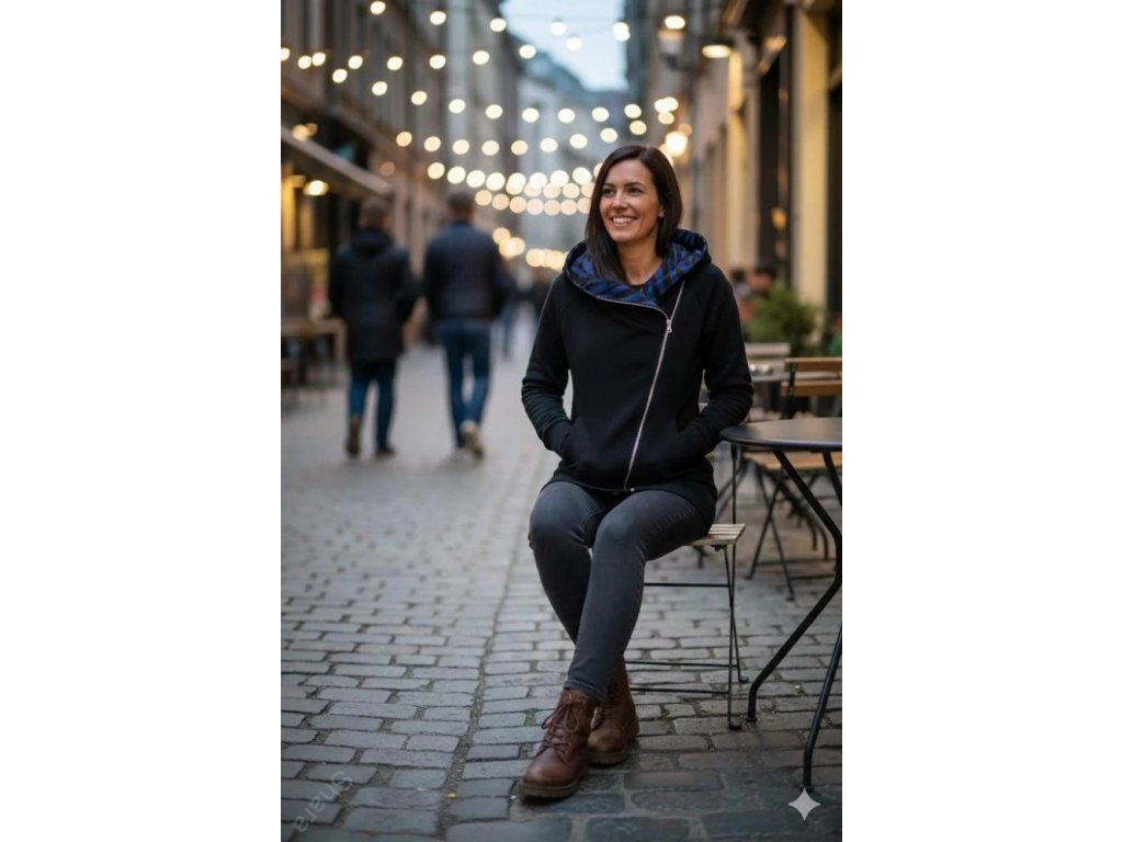 Dámská mikina počesaná - Křivák černá/zebra modrá