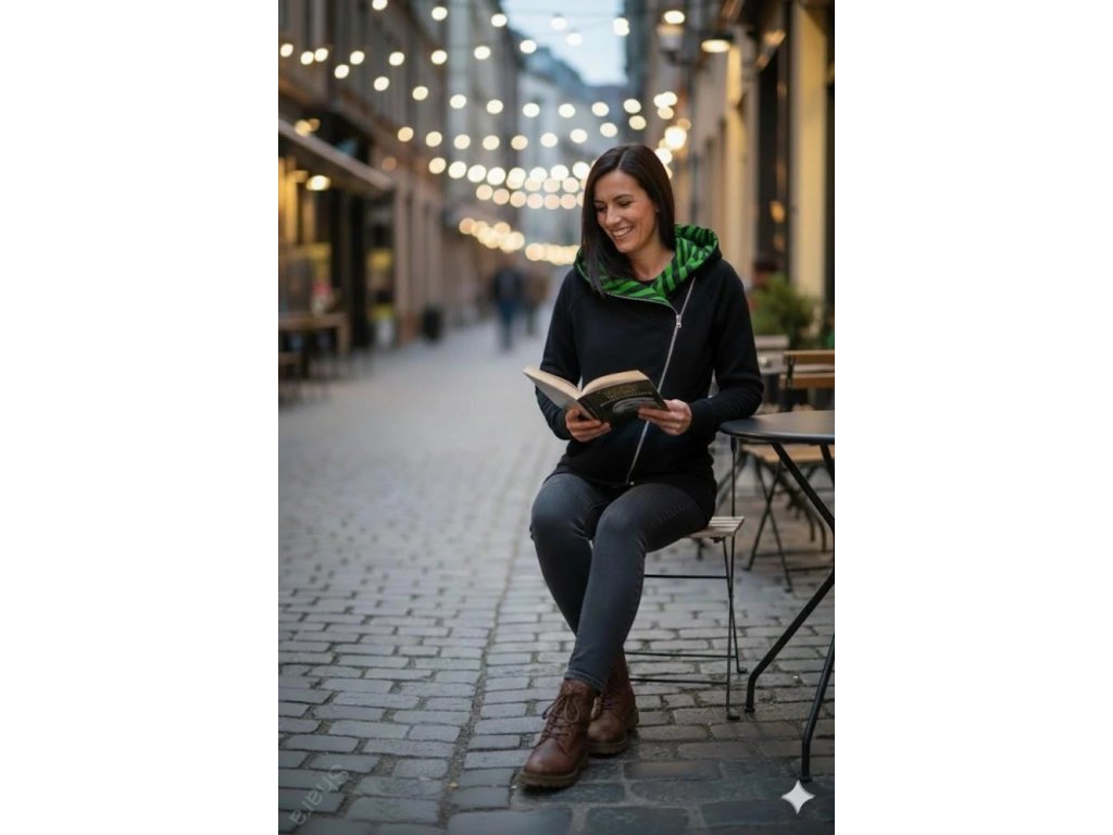 Dámská mikina počesaná - Křivák černá/zebra zelená