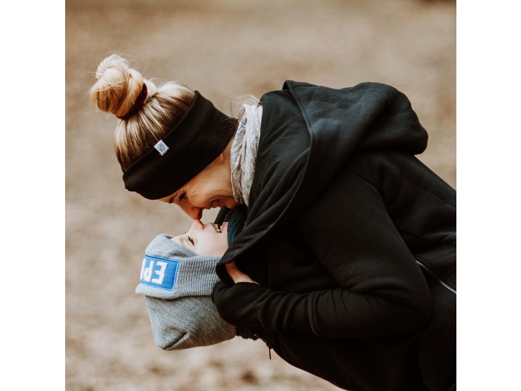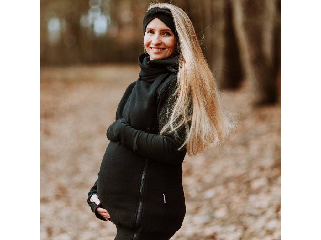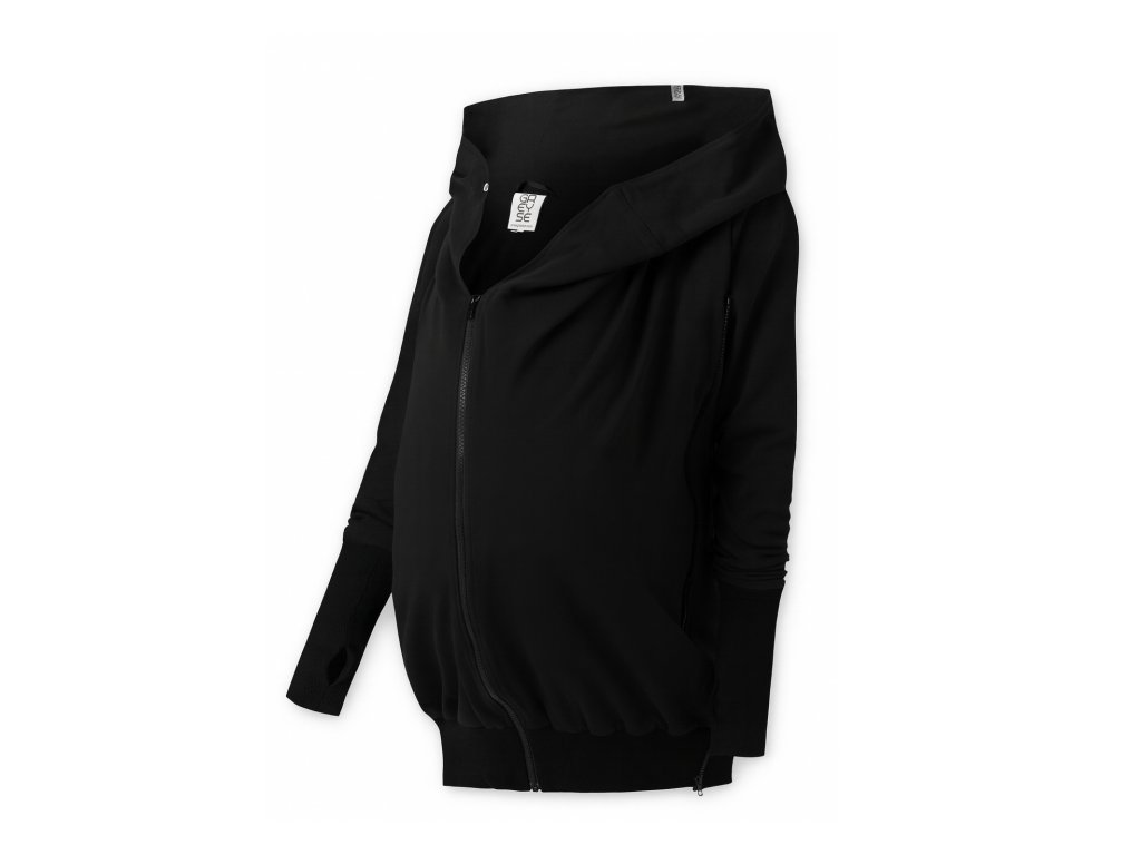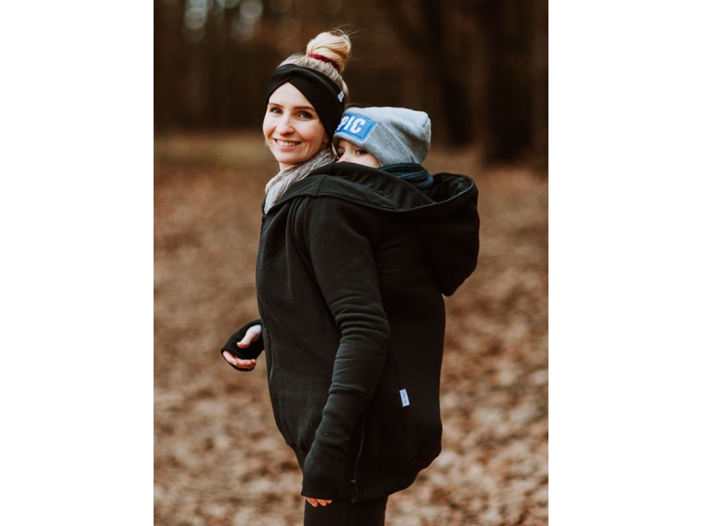 Mikina je zakončena pružnými lemy v pase i na rukávech. Náplety na rukávech mají otvory pro palce. Díky druku, který si zapnete pod krkem už v chladnějších dnech nebudete potřebovat šátek ani šálu (úplně neplatí při nošení děťátka ve předu na těle :) ). Použité zipy jsou od kvalitní a spolehlivé značky YKK.