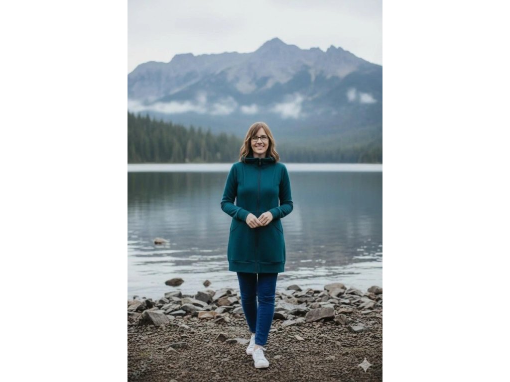 Dlouhá dámská mikina počesaná - Petrolejová
