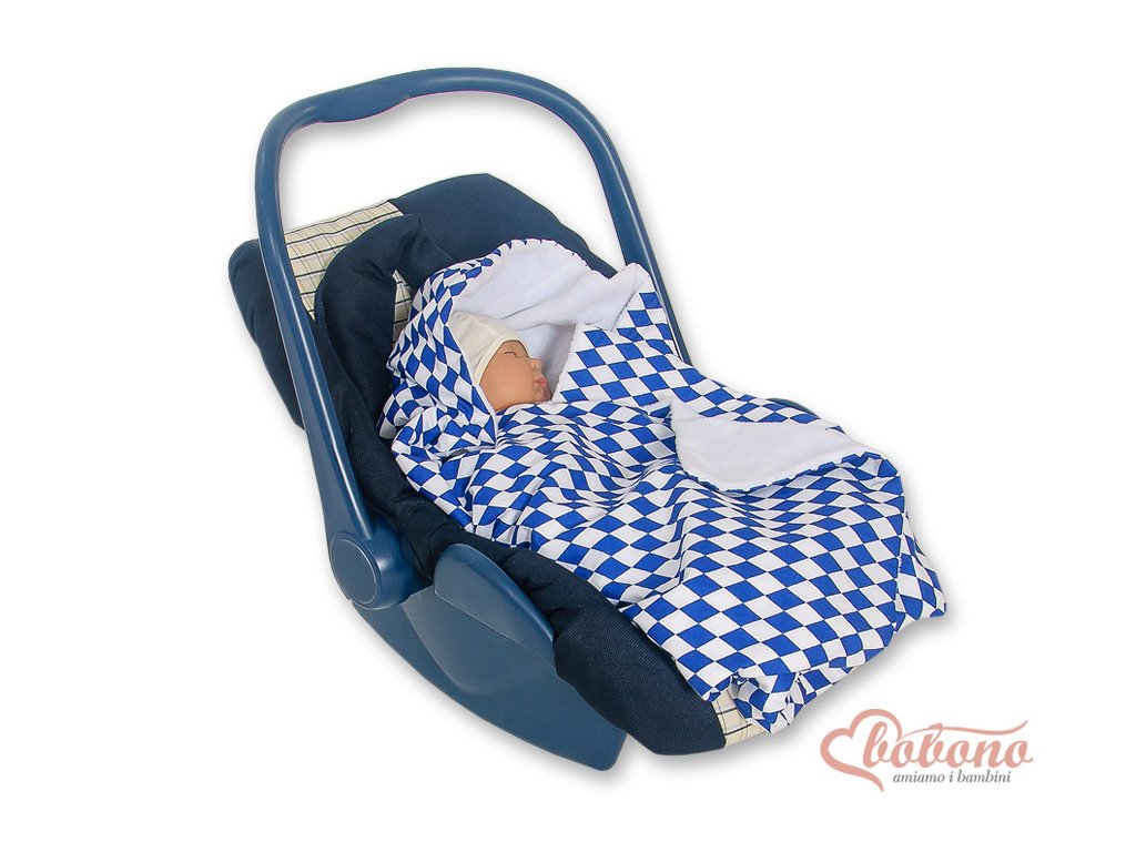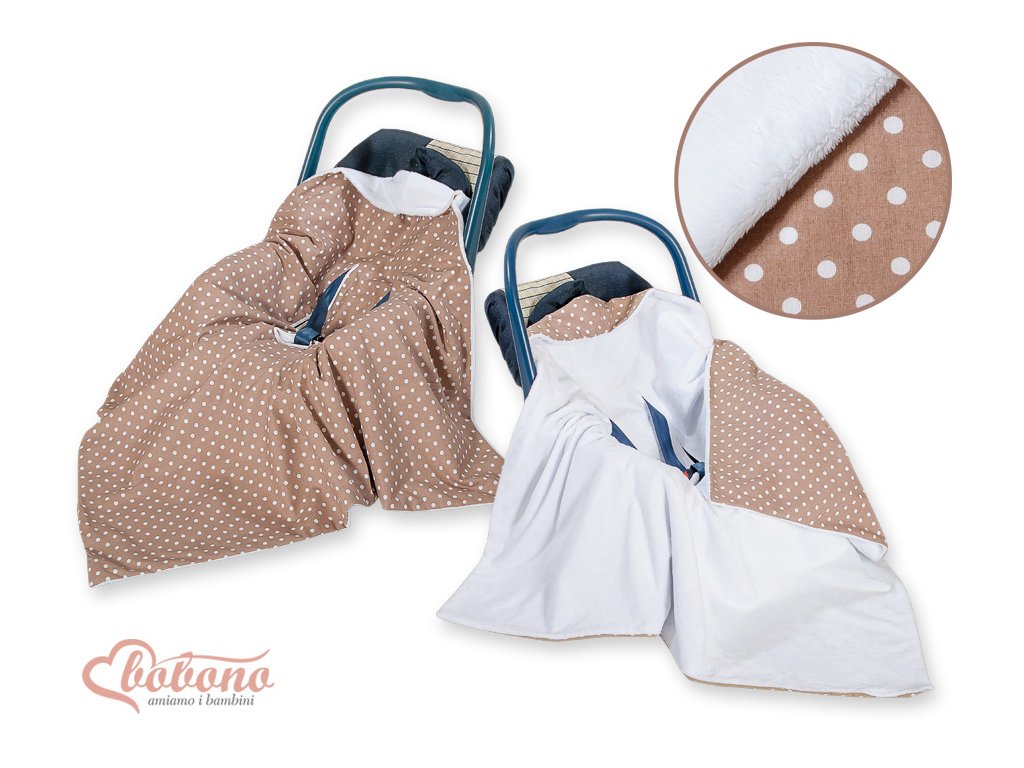 Oboustranná deka do autosedačky je výjimečně lehká, nadýchaná, velmi teplá. Dokonale chrání dítě před chladem, díky kapuci je před chladem ochráněna i hlavička děťátka. Je vyrobená z nejkvalitnějších materiálů, které jsou jemné a vhodné pro děti již od narození