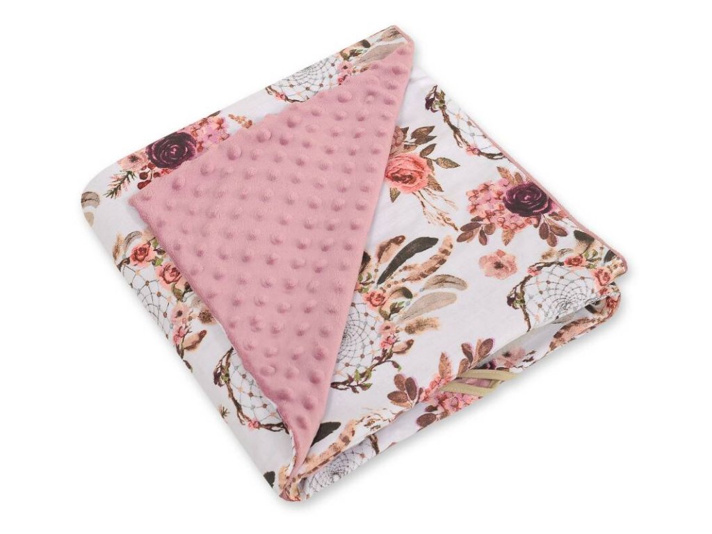 Deka do autosedačky - Lapače snů s květy/retro růžová