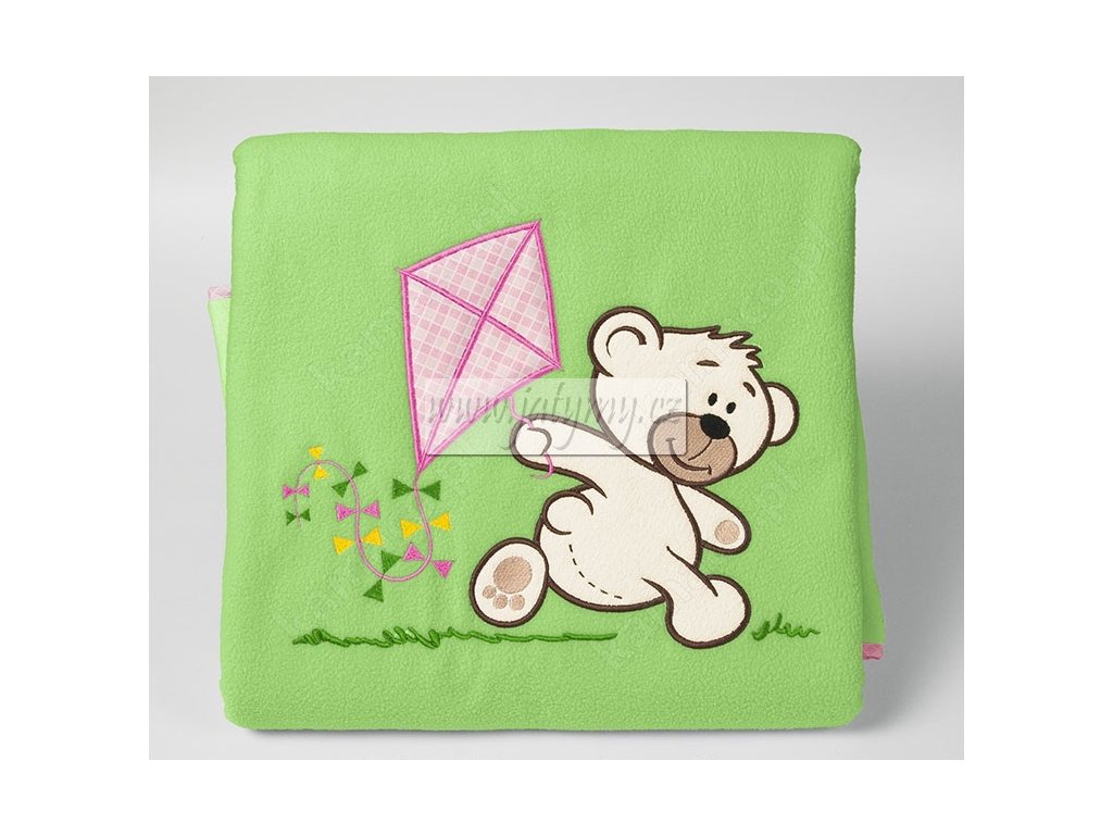 Deka - Méďa s dráčkem zelená s růžovou