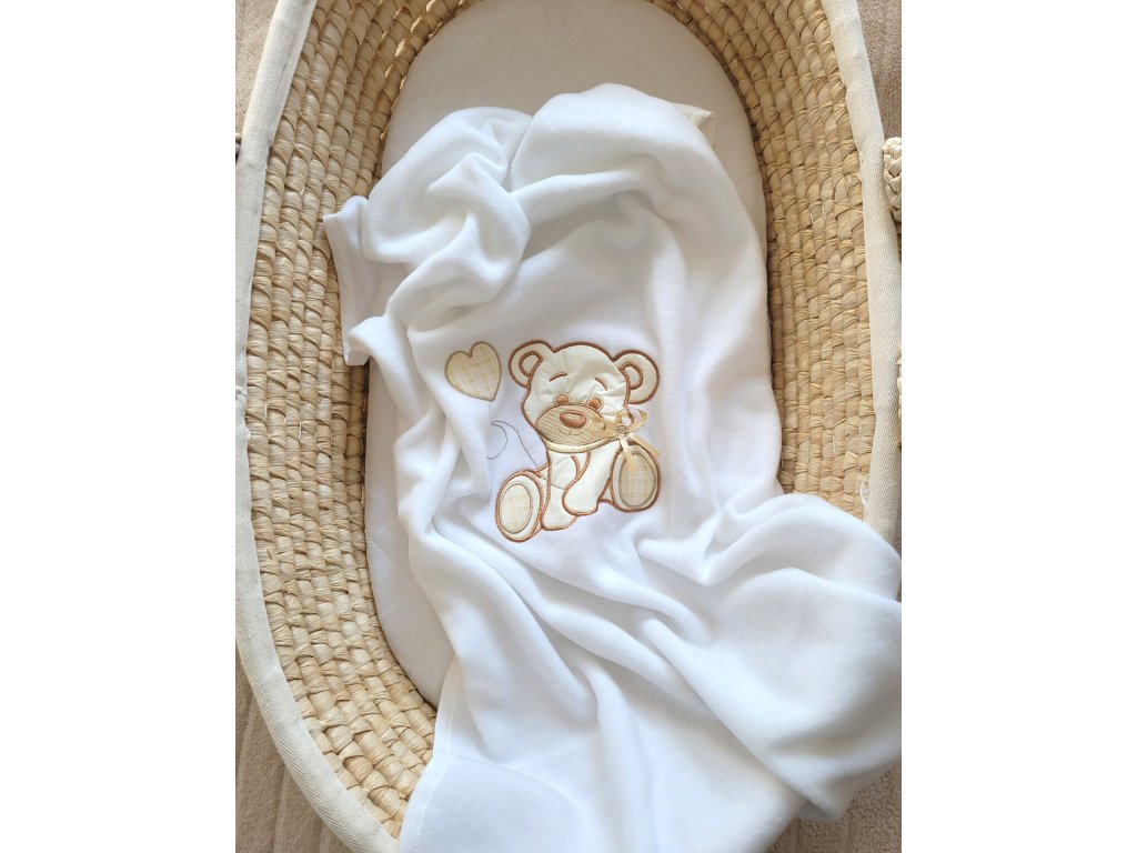 Deka polar s výšivkou - Méďa s mašlí bílá