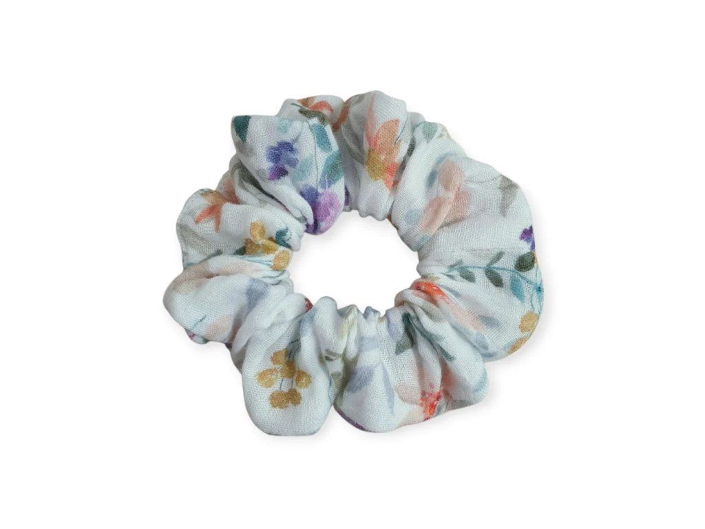 Scrunchies gumička do vlasů z jemňoučkého mušelínu, s Oeko-Tex certifikací. Neobsahuje žádné škodlivé chemikálie.