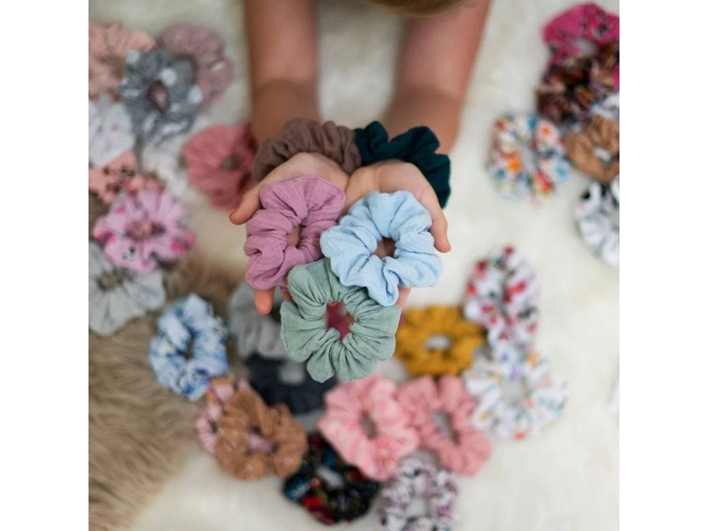 Scrunchies gumička do vlasů z jemňoučkého mušelínu, s Oeko-Tex certifikací. Neobsahuje žádné škodlivé chemikálie.