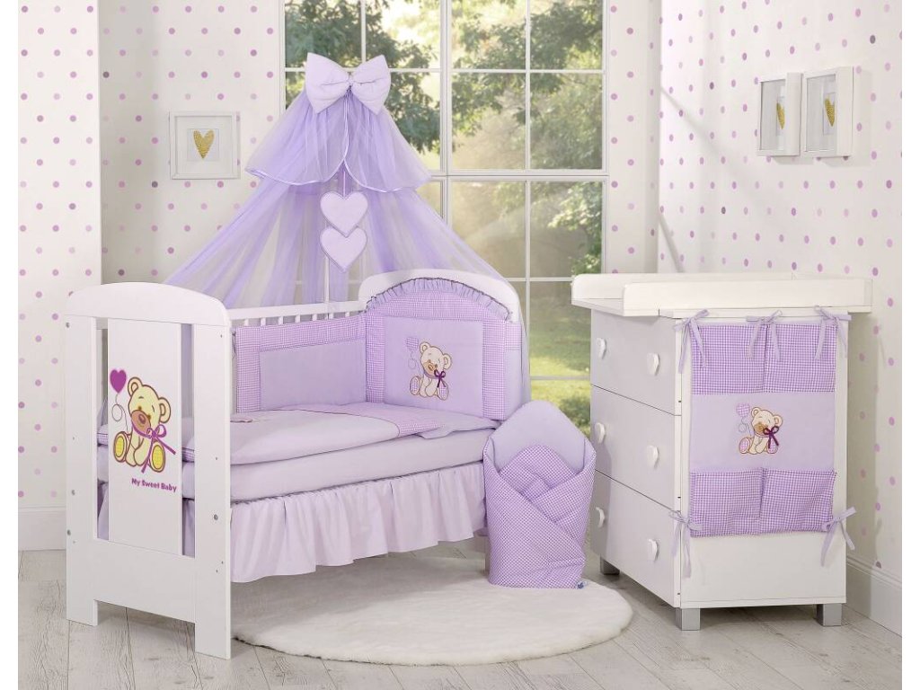 Kapsář - Méďa s mašlí fialová/kostička fialová