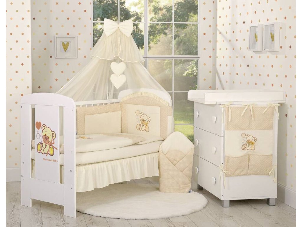 Kapsář - Méďa s mašlí krémová/béžová s tečkami