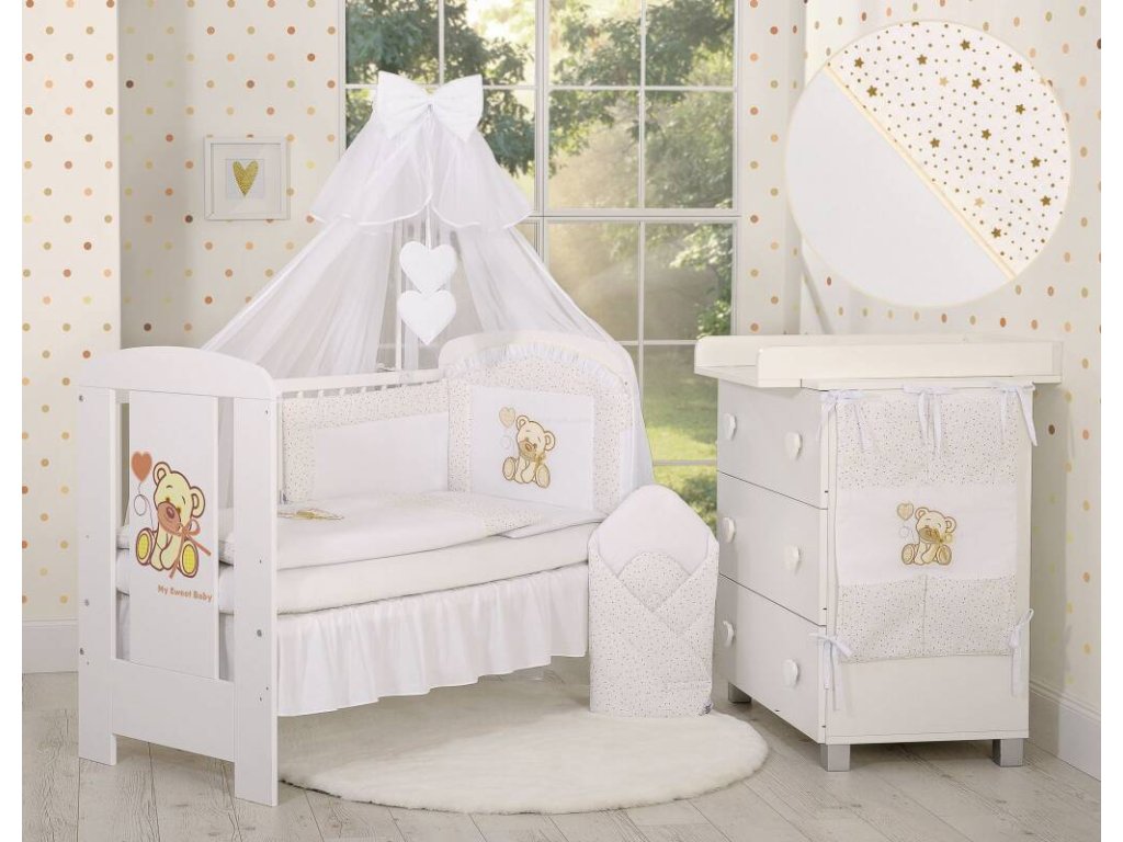 Kapsář - Méďa s mašlí bílá/mini hvězdičky zlaté