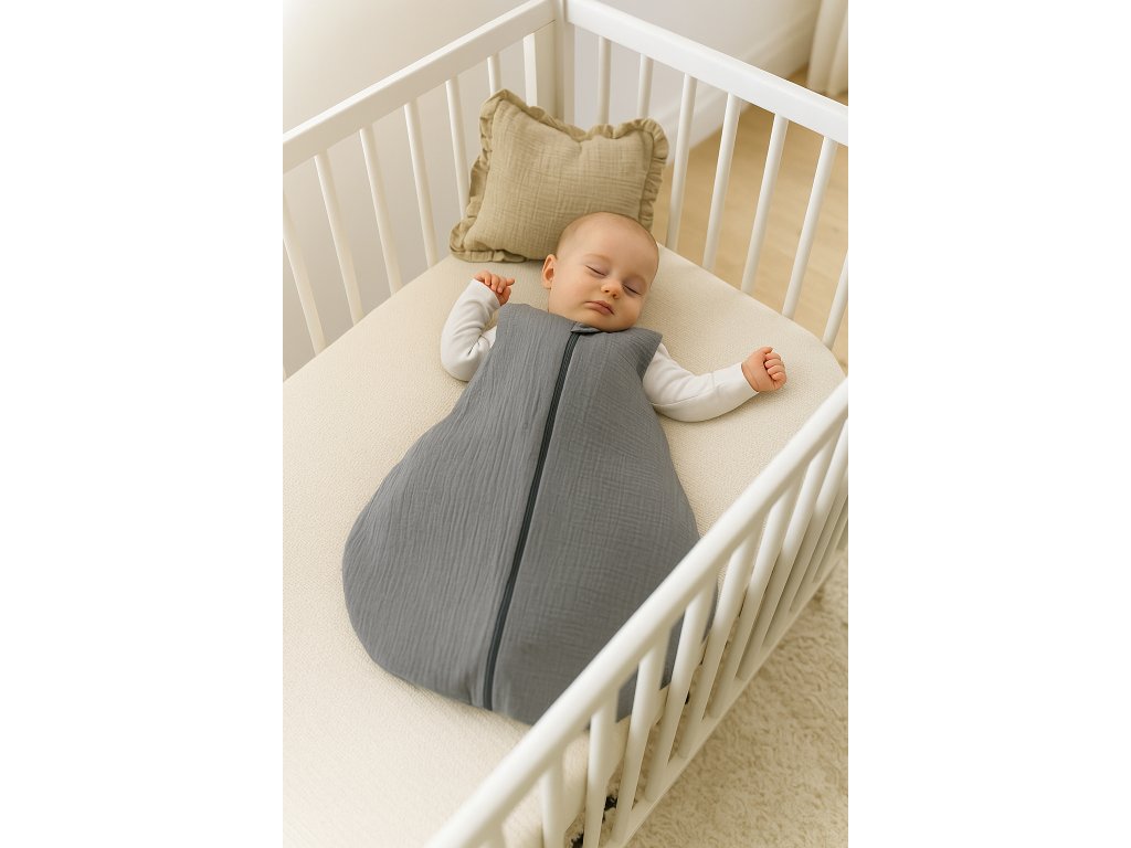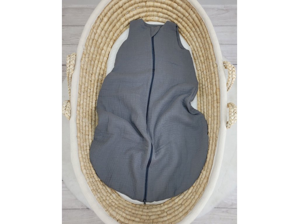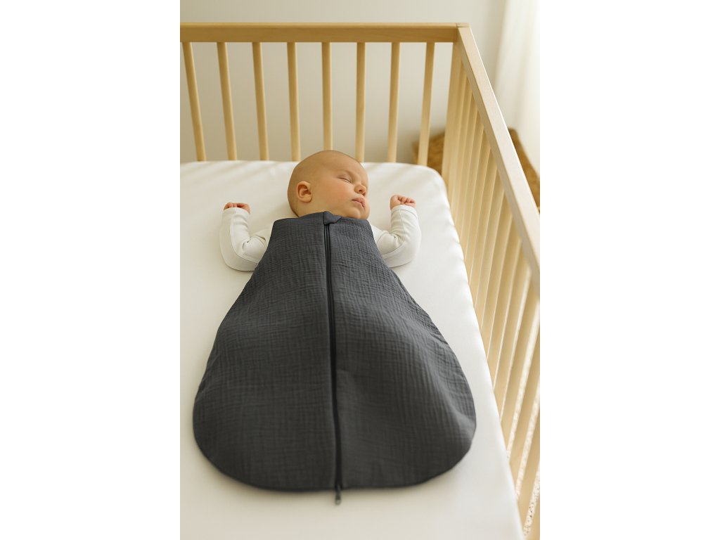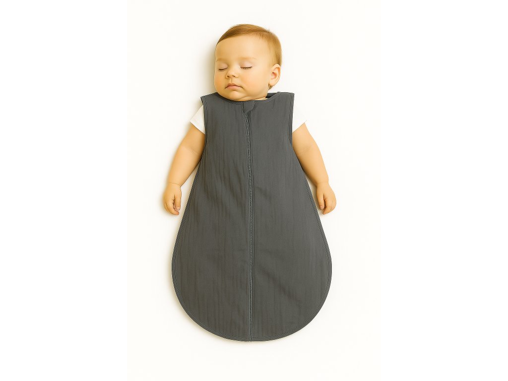 Pohodlný, mušelínový spací vak/pytel. Je dvouvrstvý, bez zateplení, s anatomickým zaobleným tvarem.
