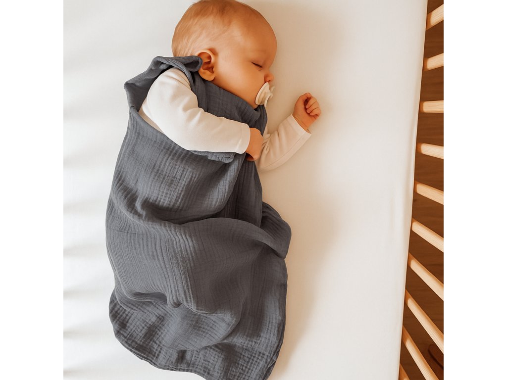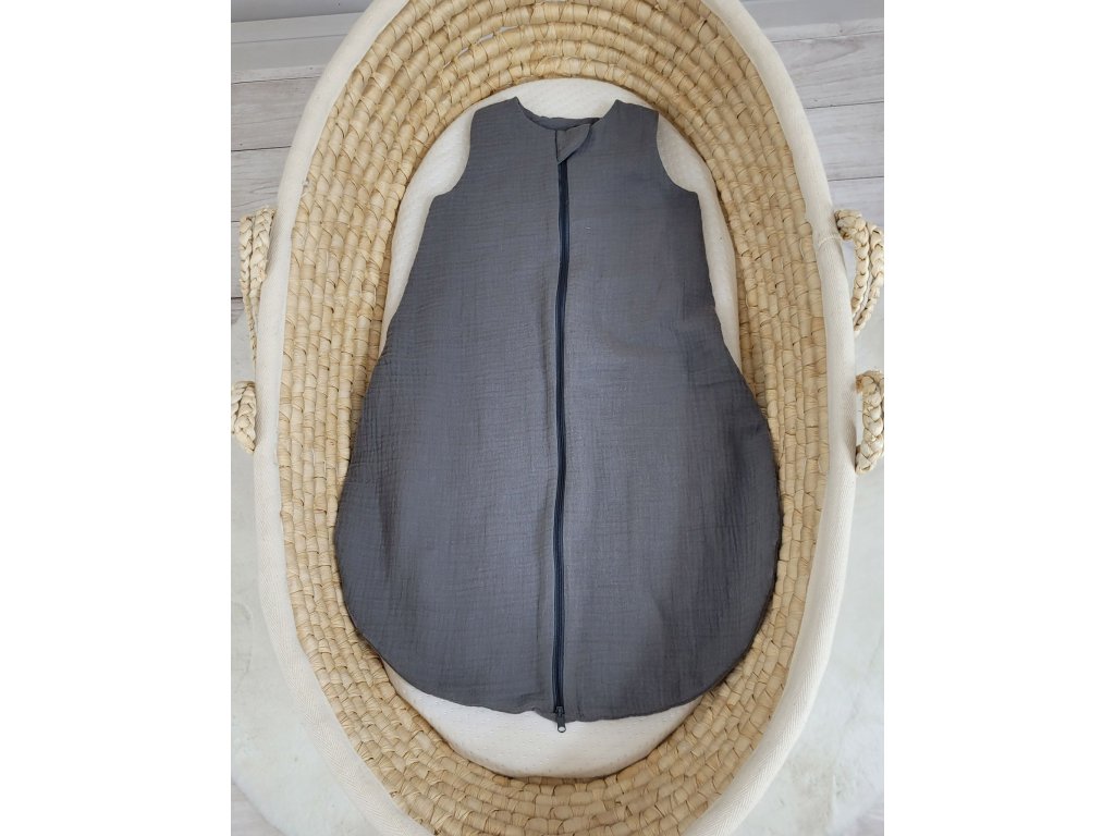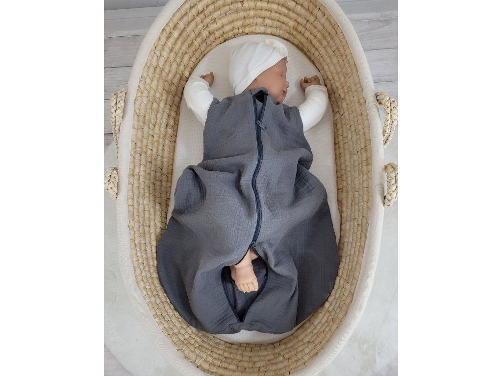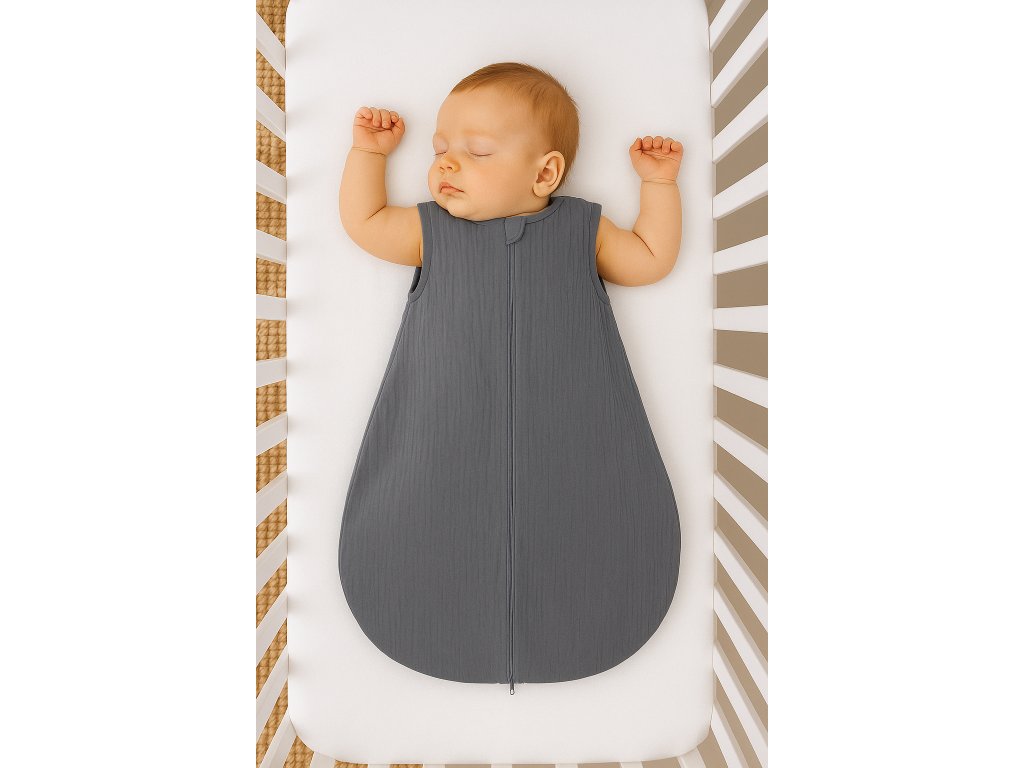 Pohodlný, mušelínový spací vak/pytel. Je dvouvrstvý, bez zateplení, s anatomickým zaobleným tvarem.