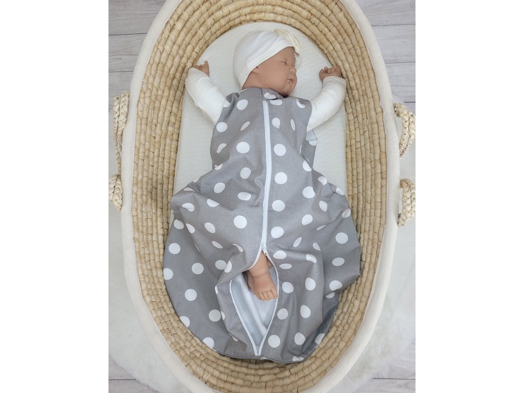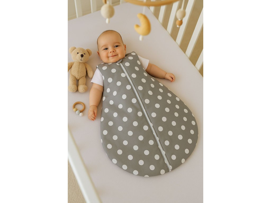 Kulatý pytel je ideální nejen do postýlky, ale také do mojžíšova koše, kolébky, kočárku. Dlouhý zip, který se rozepíná v horní nebo spodní části vaku, usnadňuje jeho používání - umožňuje výměnu plenky, aniž byste museli dítě vzbudit. V horní části zipu je všita ochrana brady. Velkou výhodou spacího pytle je kulatý tvar velké hrušky, který umožňuje volný pohyb nohou a zároveň chrání před odkrytím.