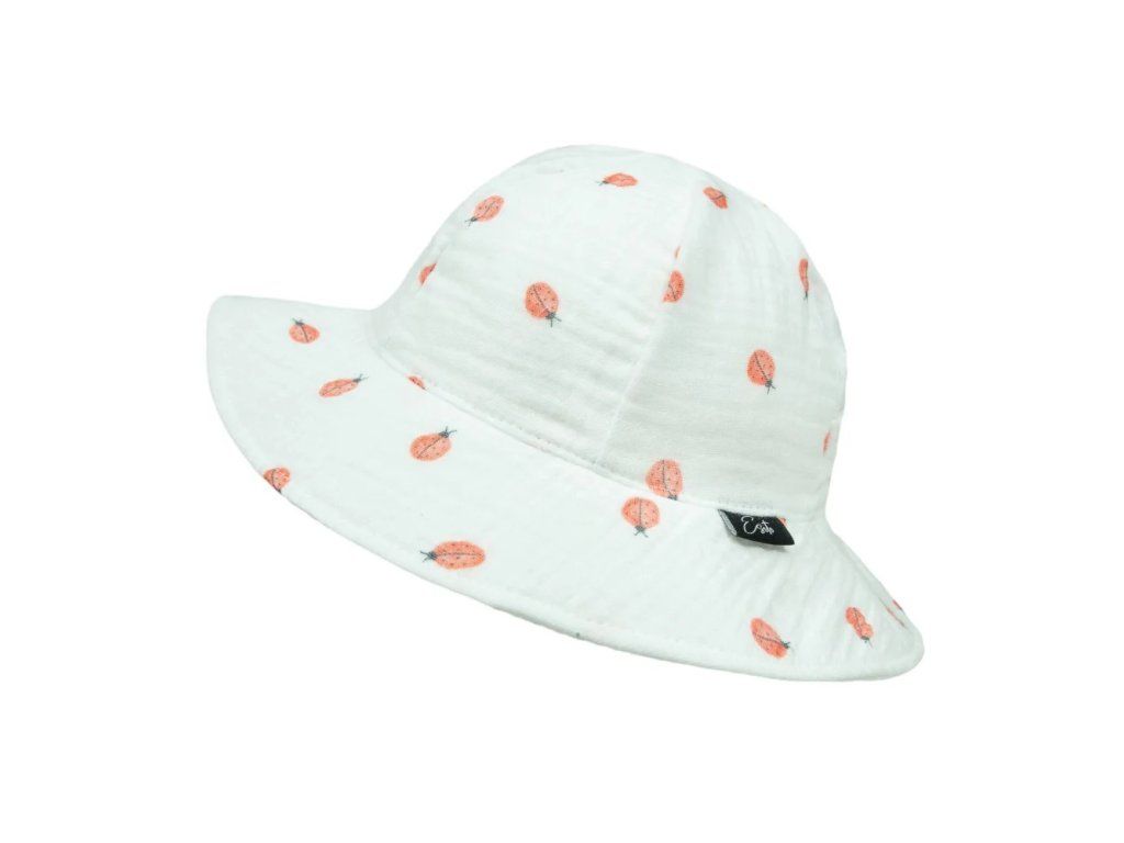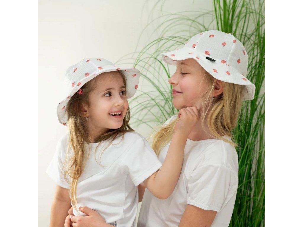 Dívčí mušelínový klobouk, který je vzdušný, lehký a skvěle padnoucí.