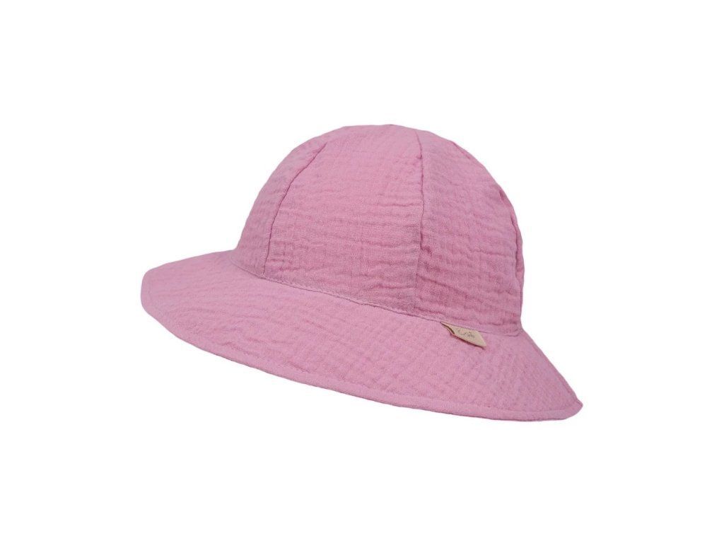 Dívčí mušelínový klobouk, který je vzdušný, lehký a skvěle padnoucí.