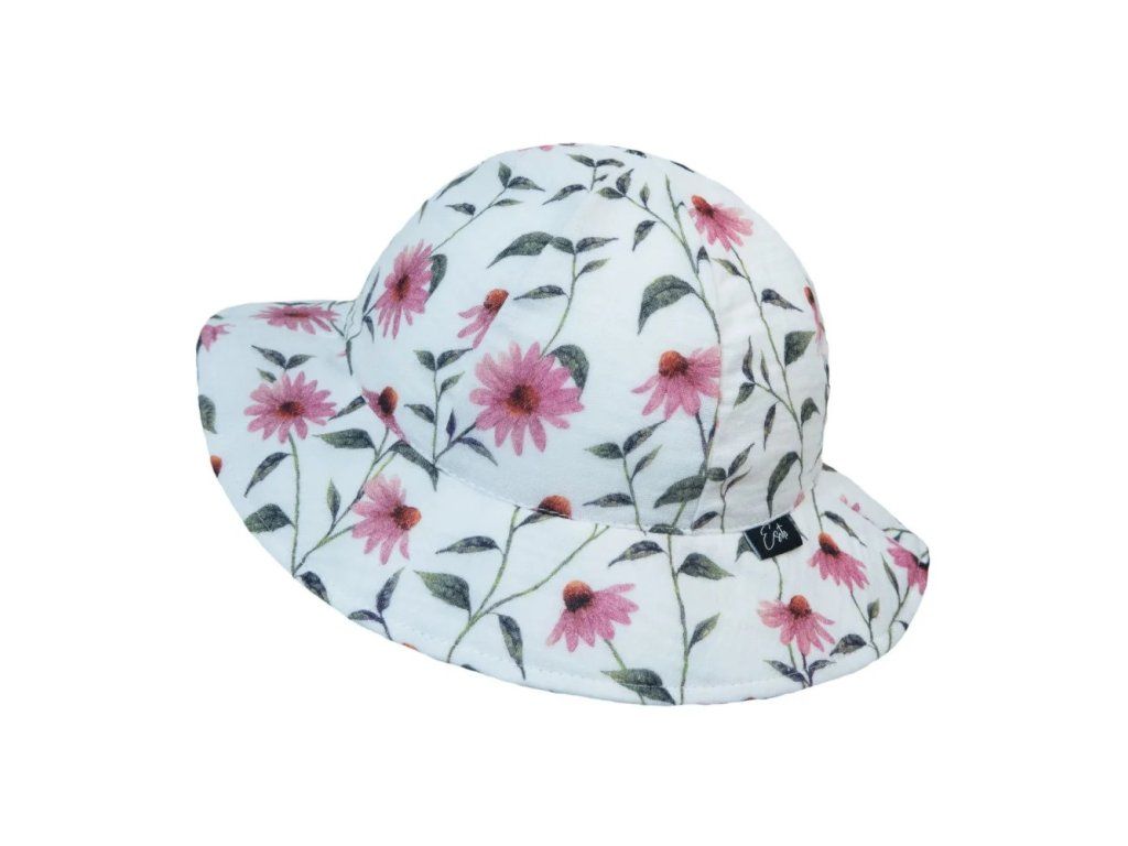Dívčí mušelínový klobouk, který je vzdušný, lehký a skvěle padnoucí.