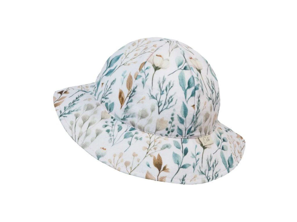 Dívčí mušelínový klobouk, který je vzdušný, lehký a skvěle padnoucí.