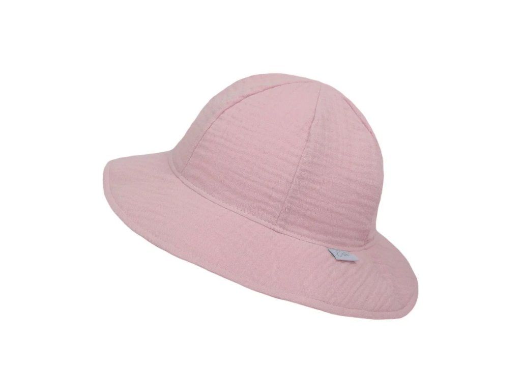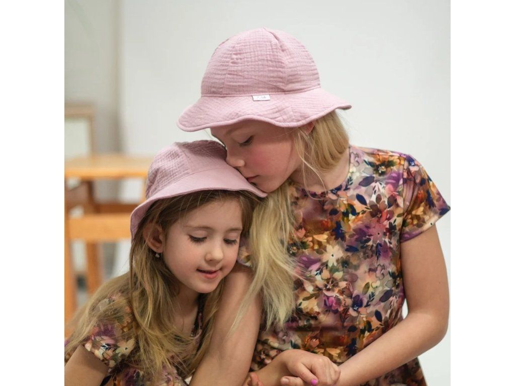 Dívčí mušelínový klobouk, který je vzdušný, lehký a skvěle padnoucí.