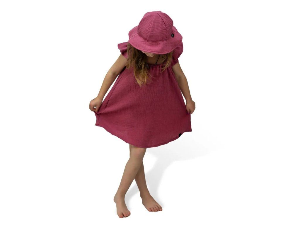 Dívčí mušelínový klobouk, který je vzdušný, lehký a skvěle padnoucí.