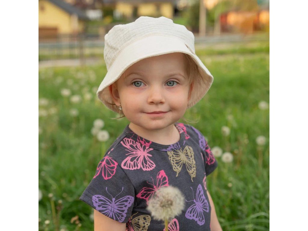 Mušelínový klobouk, který je vzdušný, lehký a skvěle padnoucí.