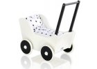 Dřevěný nízký kočárek je v několika barvách/barevných kombinacích. Bez peřinky a polštářku plní funkci vozíku a tak ho mohou používat i kluci :)