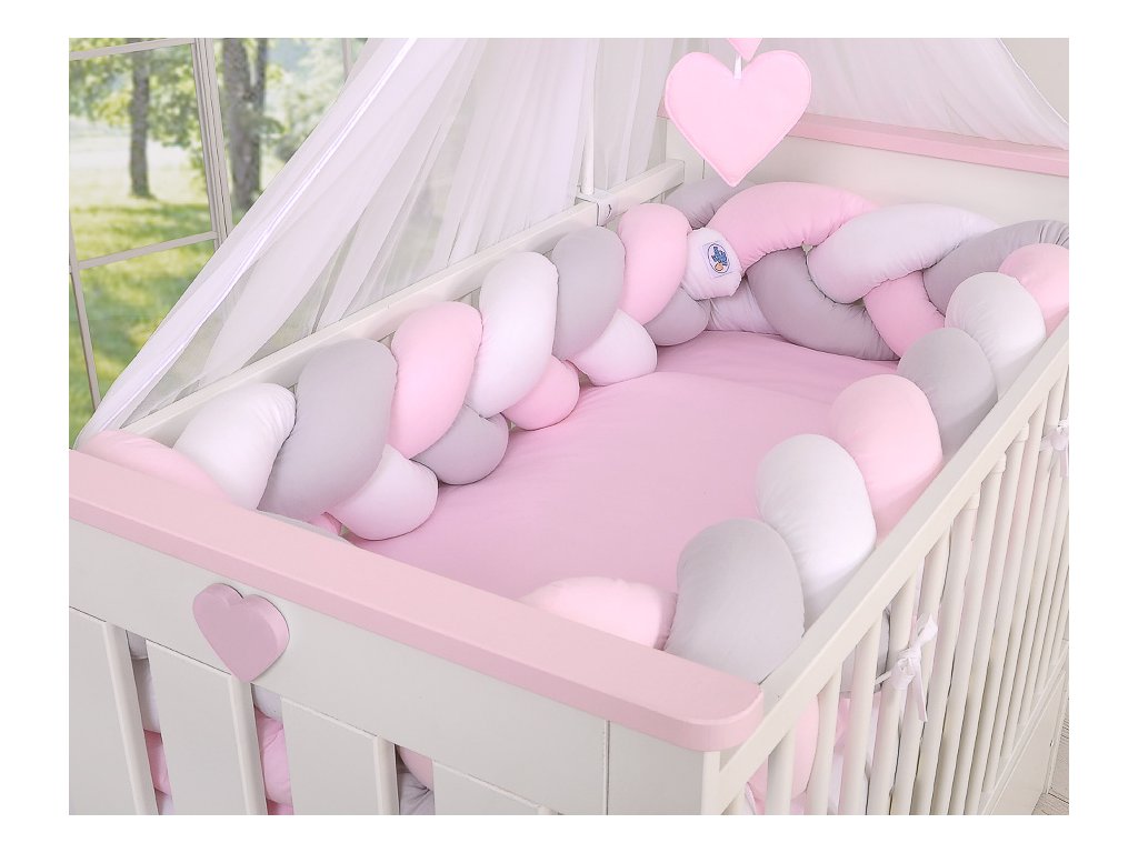 Mantinel kolem celé postýlky - Magic loop bílá/šedá/růžová