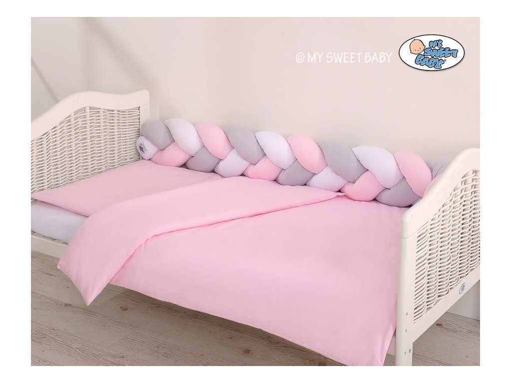 Mantinel upletený do copu dotváří vzhled dětské postýlky.