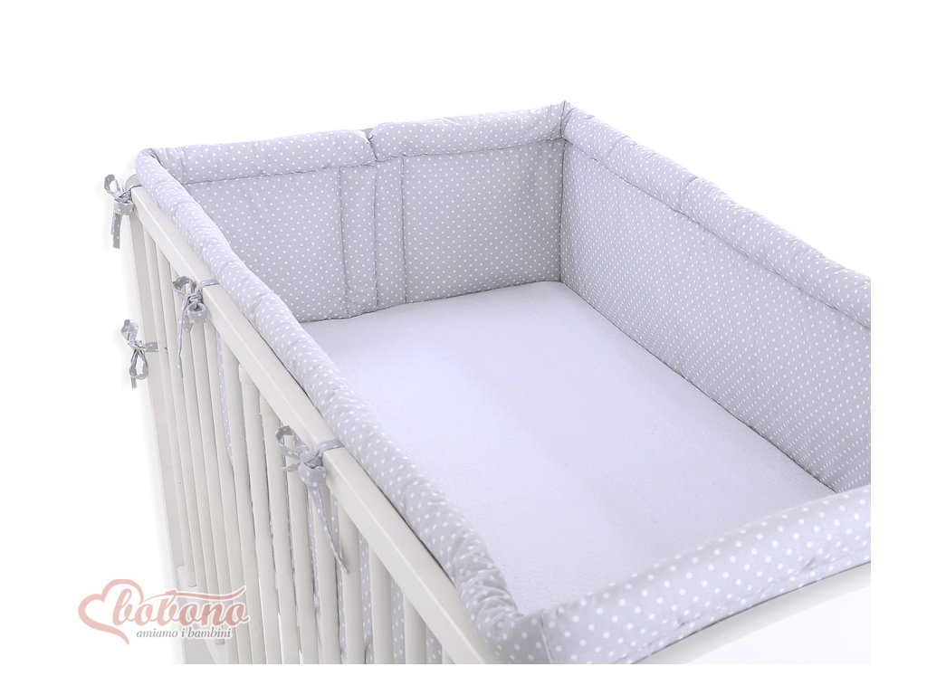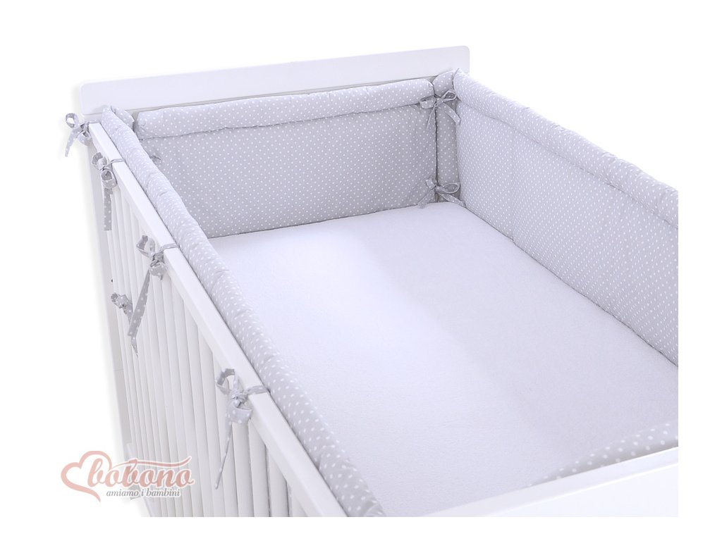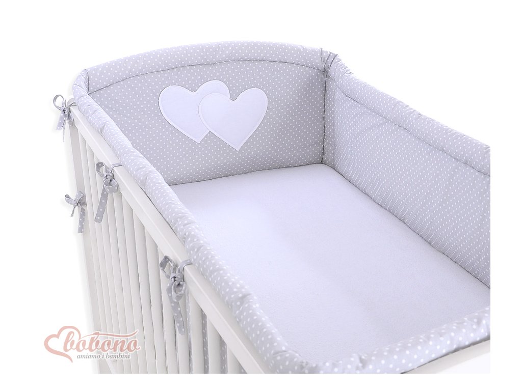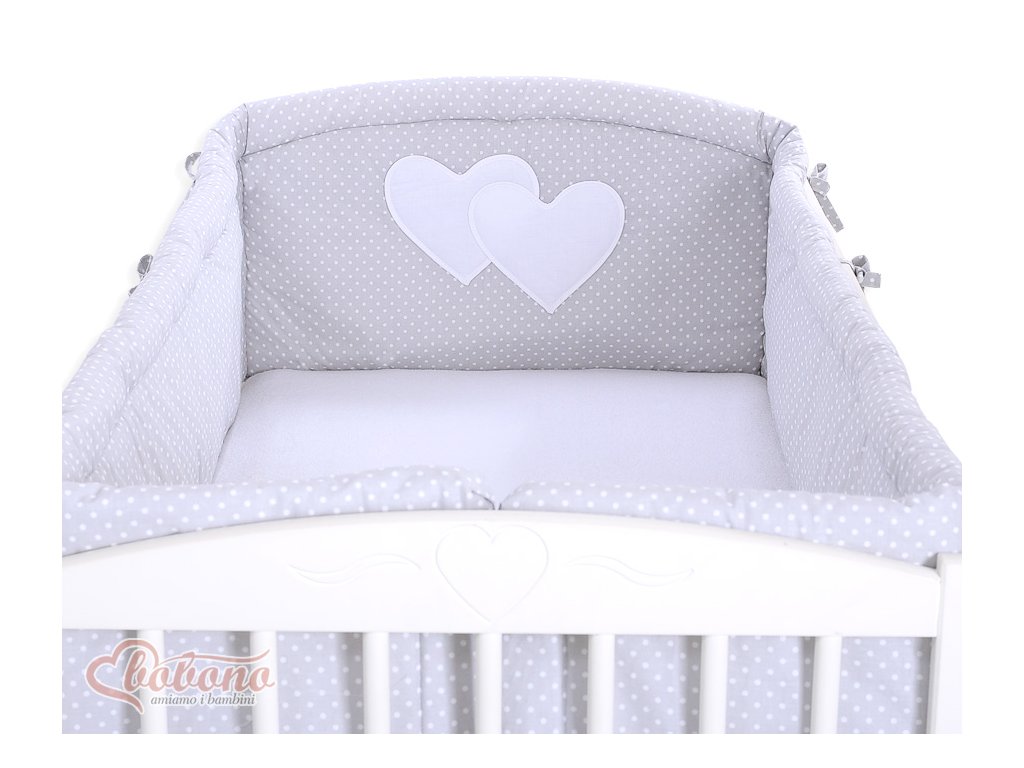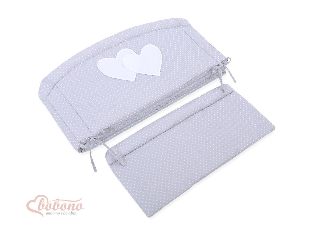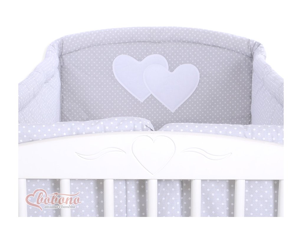 Mantinel kolem celé postýlky - Srdíčka šedá s tečkami