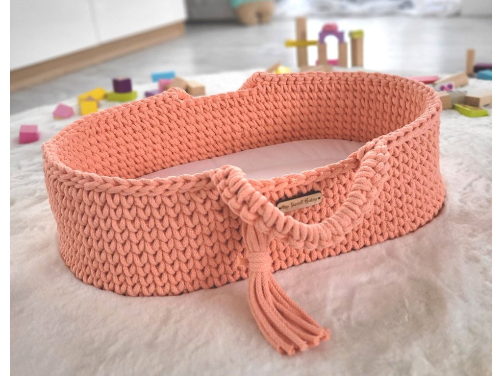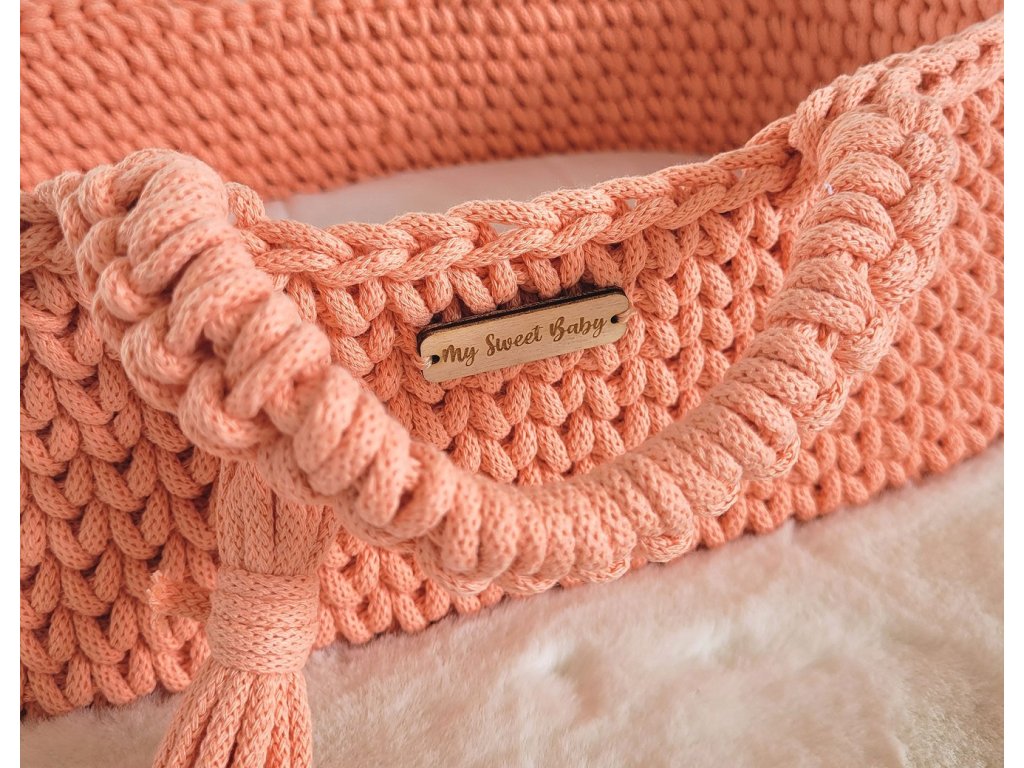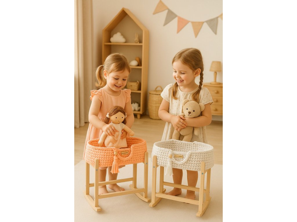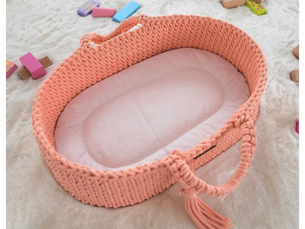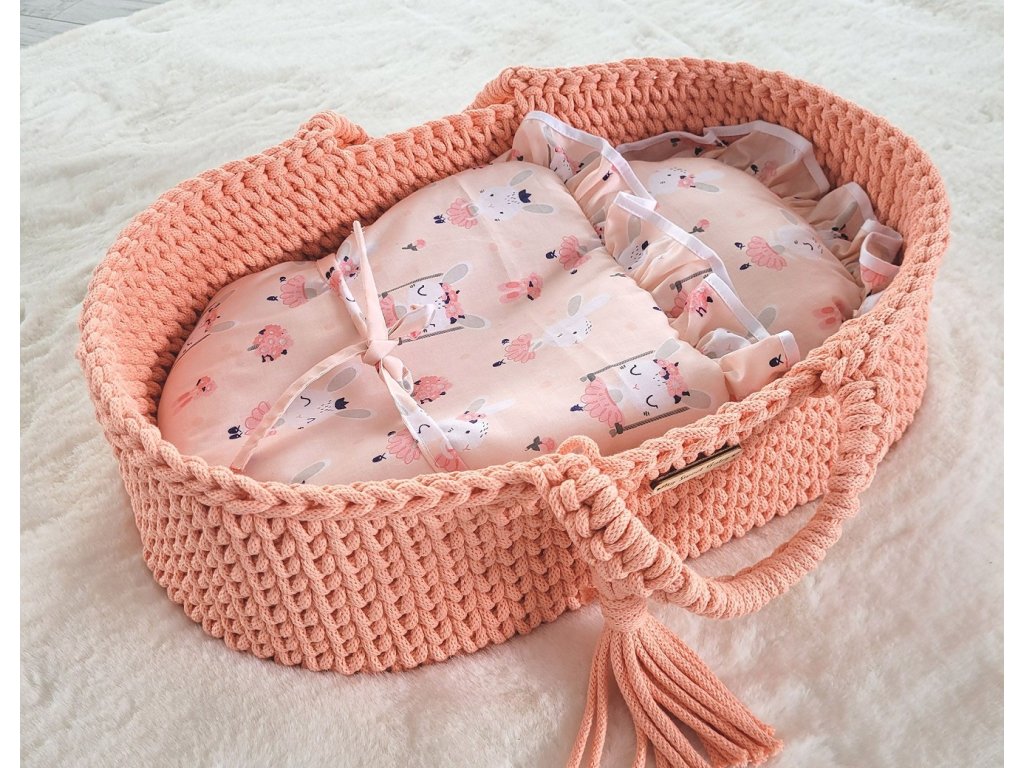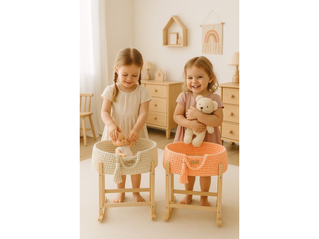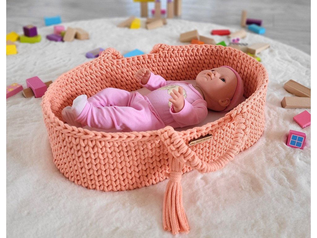 Boho koš pro panenku s kolébkou - Broskvová