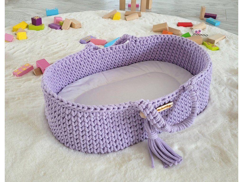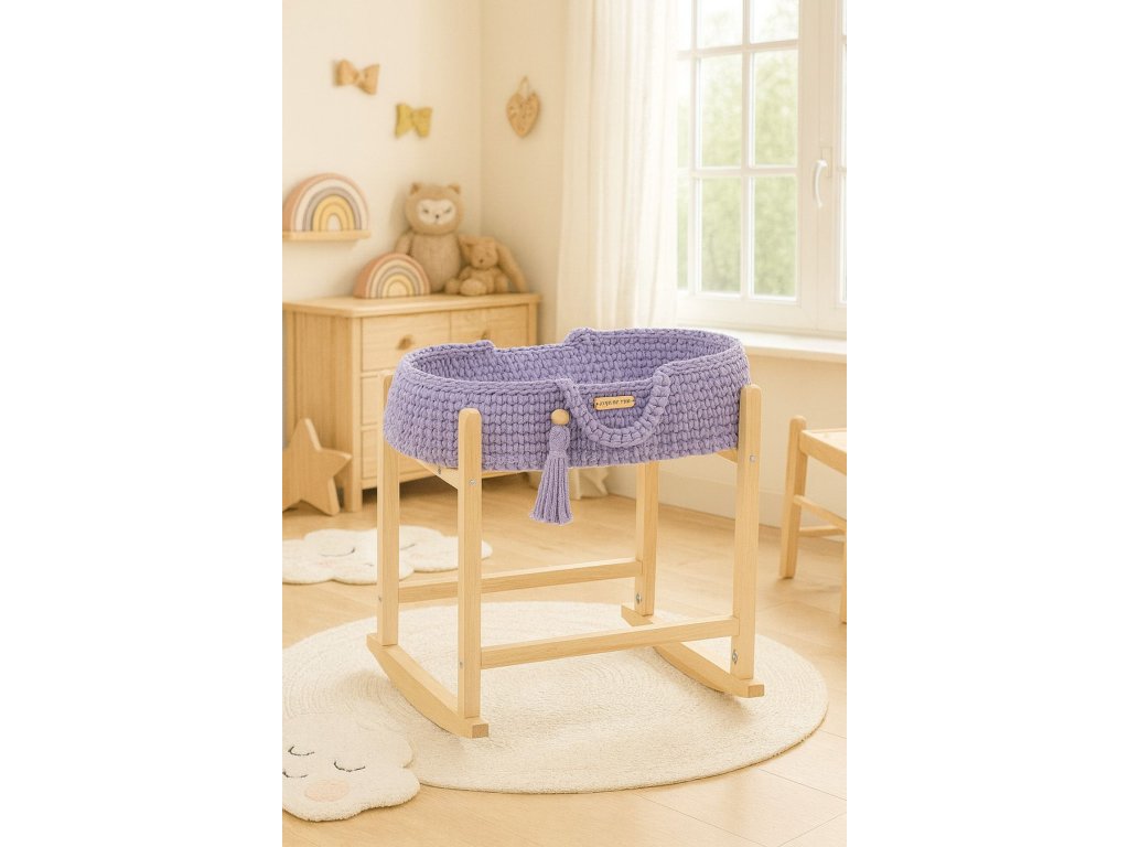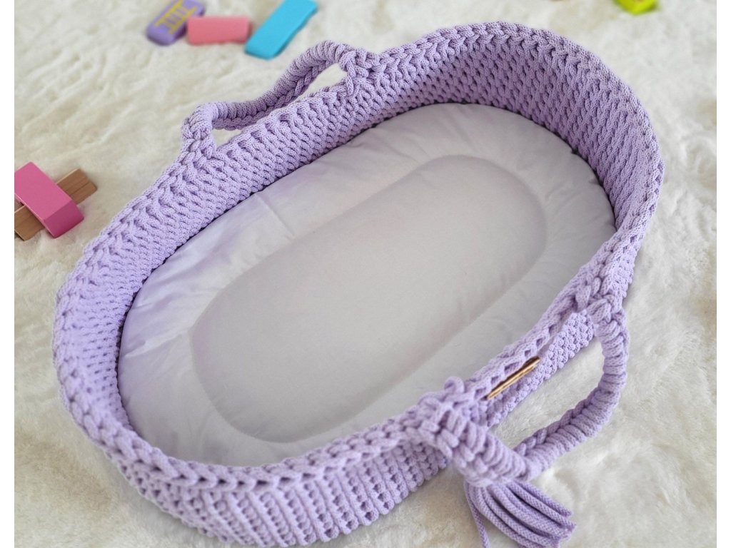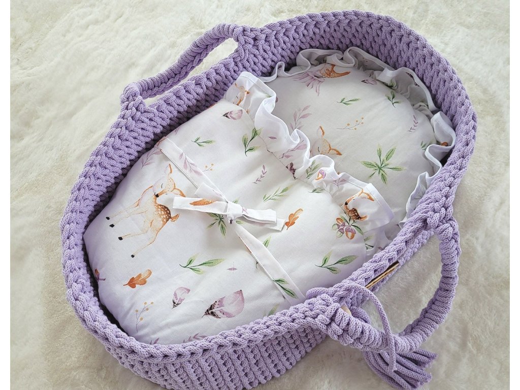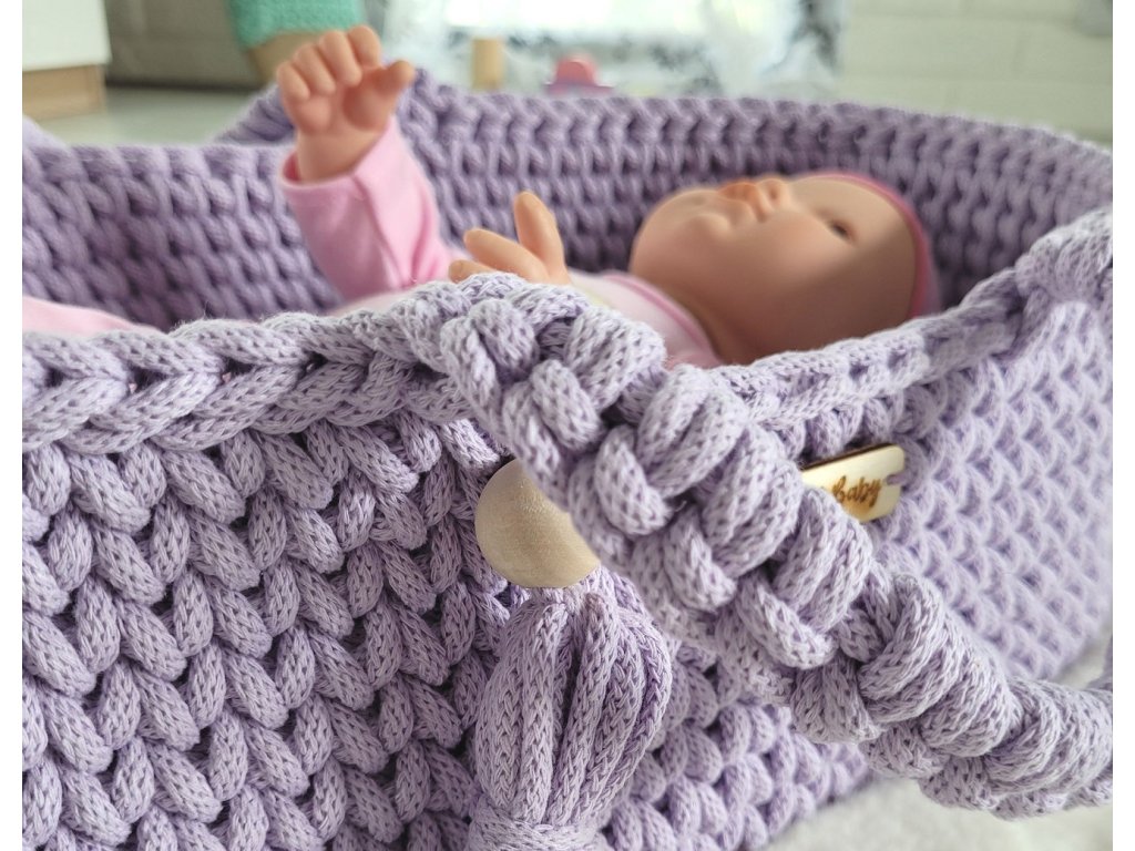 Boho koš pro panenku s kolébkou - Fialová