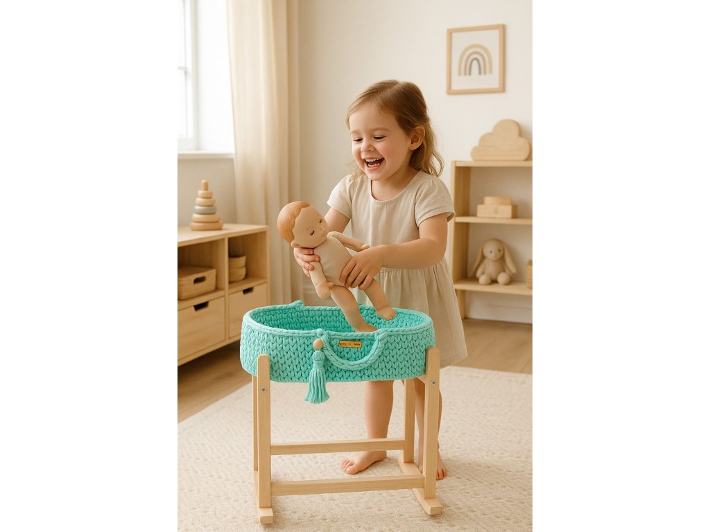 Pletený Boho koš pro panenku se stojanem - kolébkou