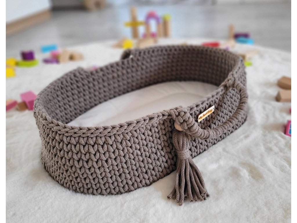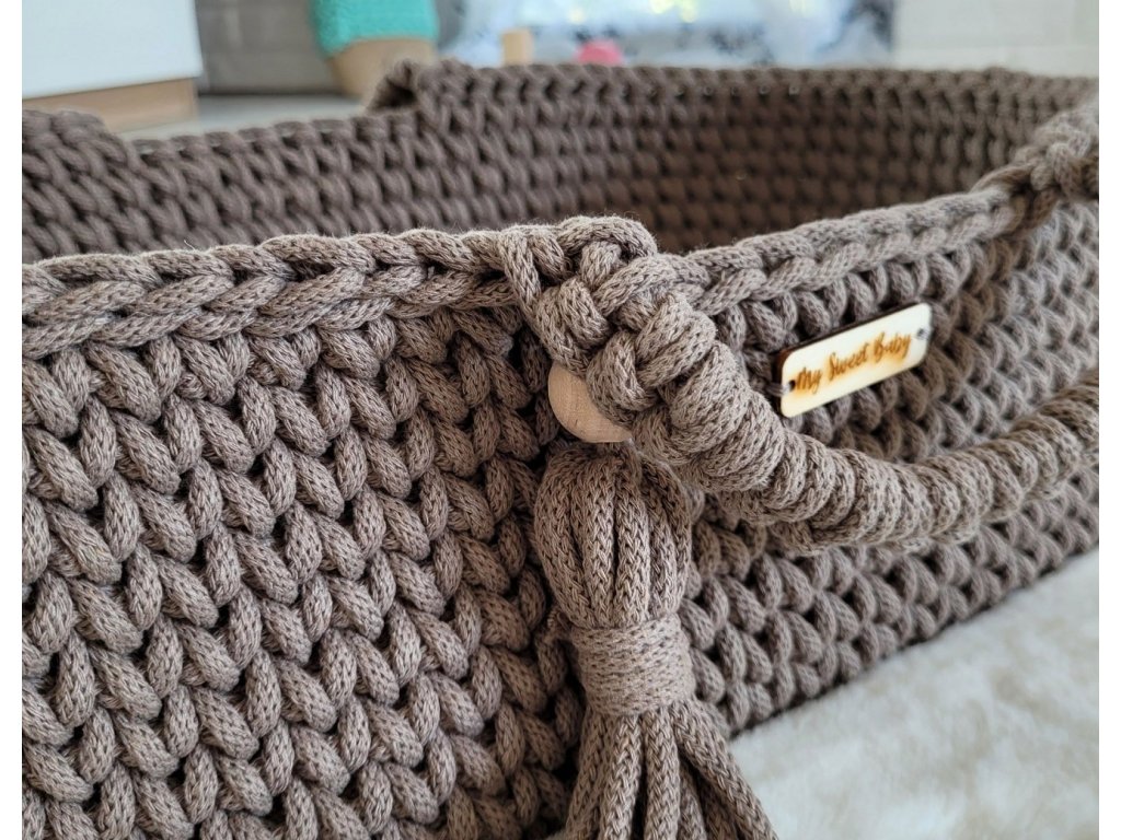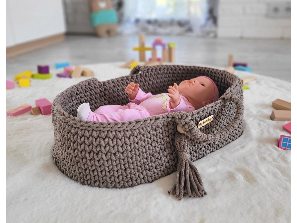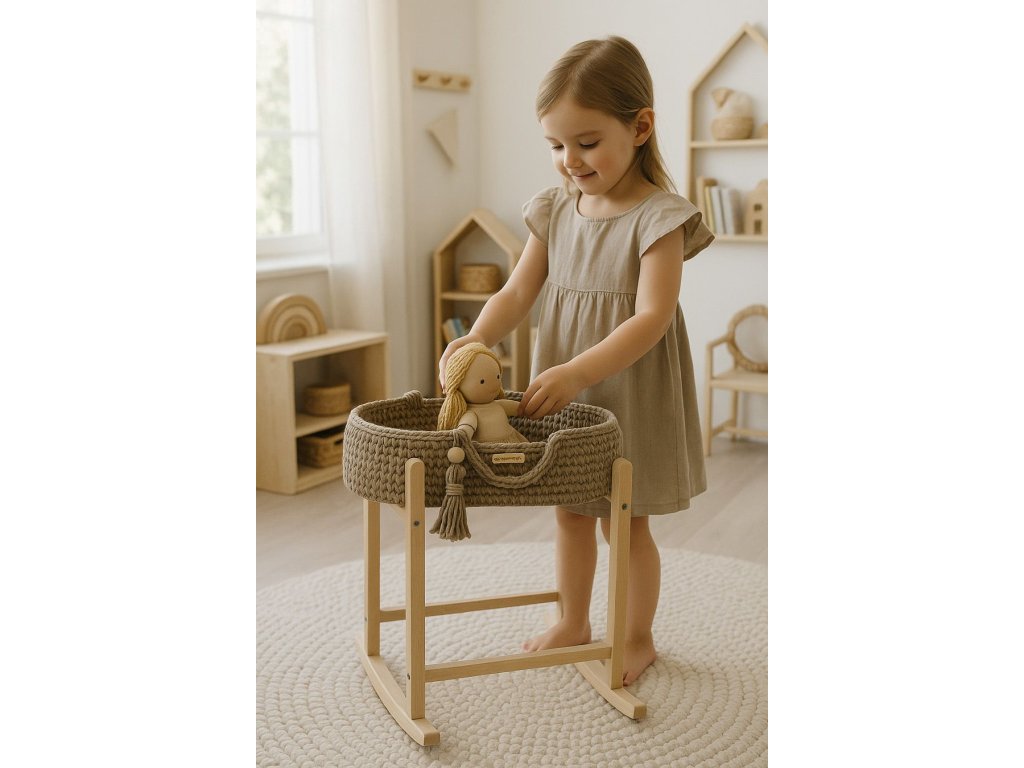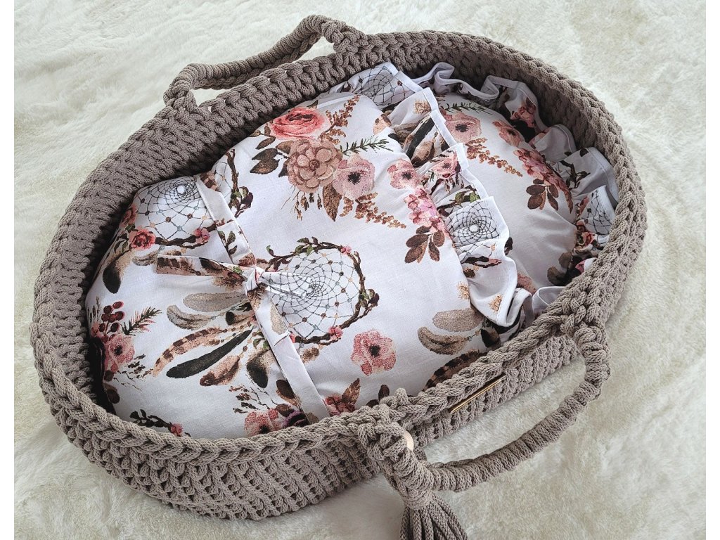Boho koš pro panenku s kolébkou - Mocca
