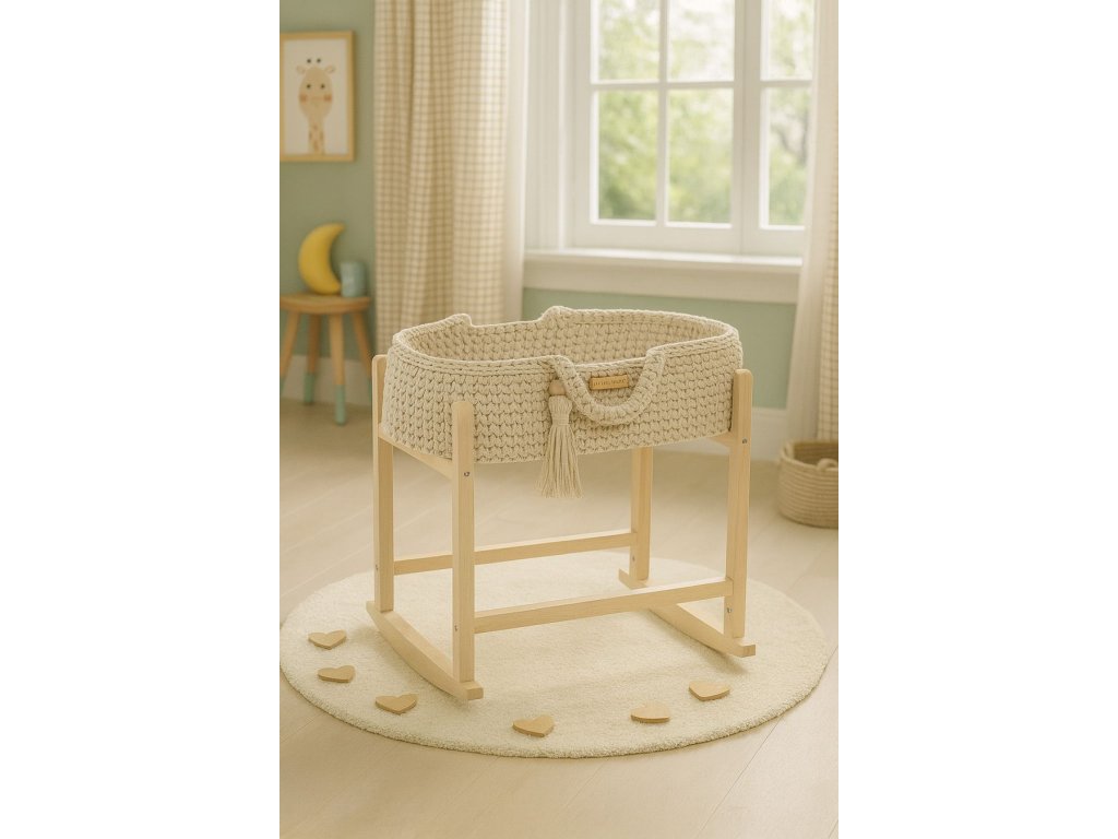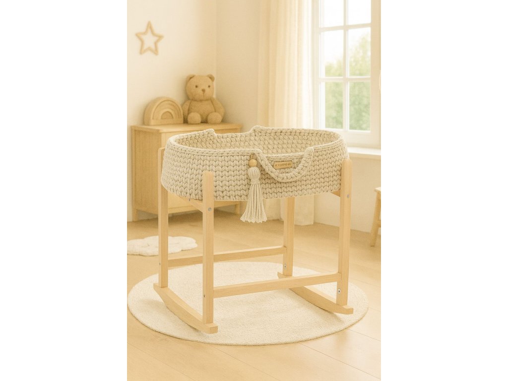 Pletený Boho koš pro panenku se stojanem - kolébkou