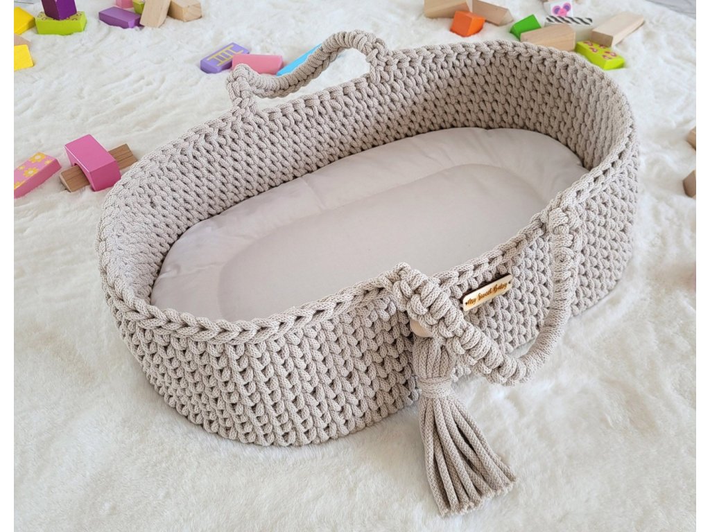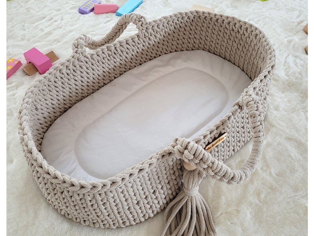Boho koš pro panenku s kolébkou - Sv. béžová