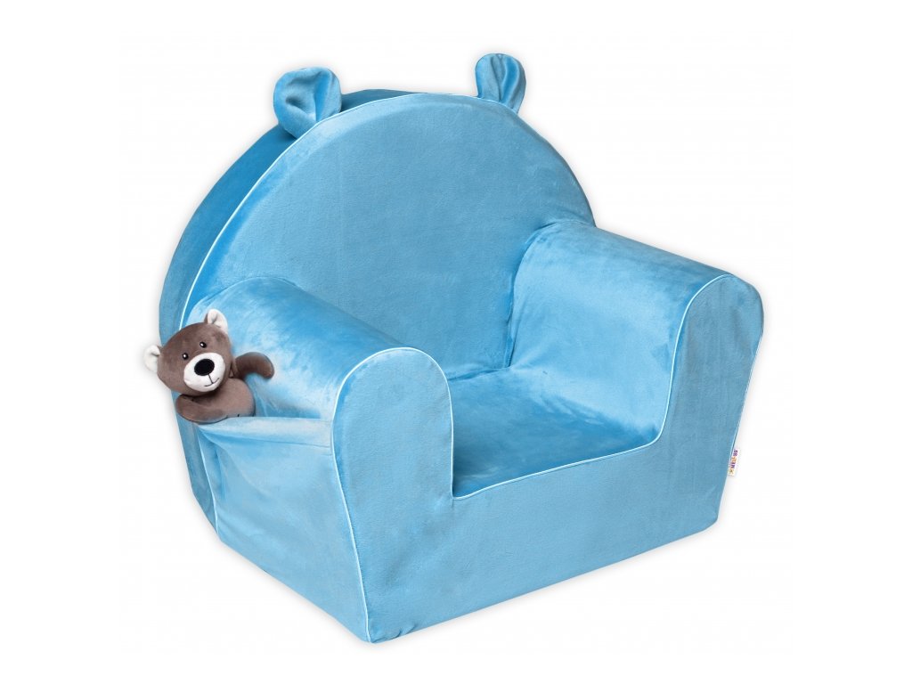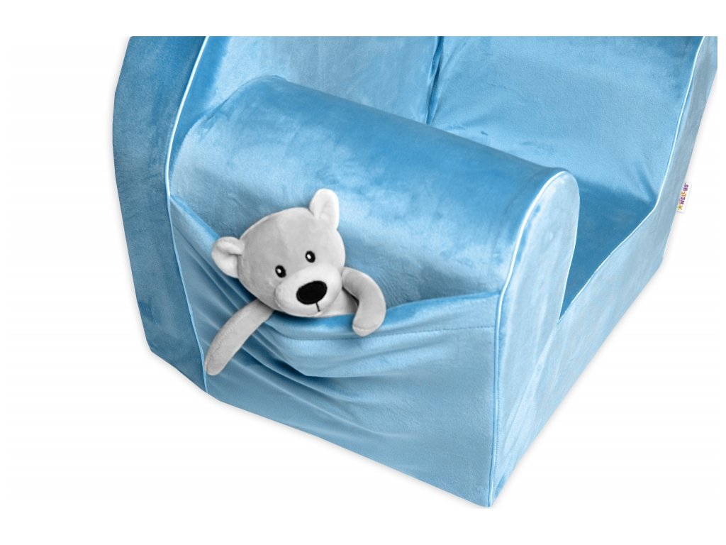 Křesílko Teddy velvet s boční kapsou - Modrá