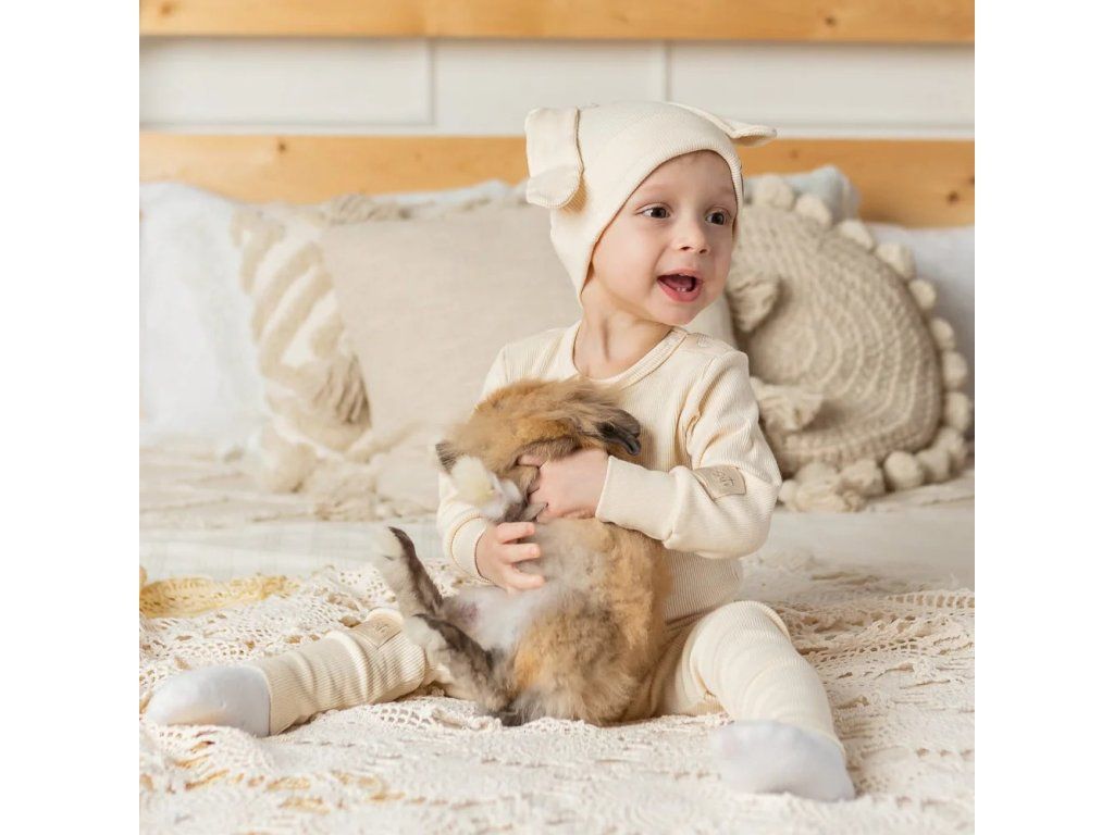Žebrované rostoucí dětské legíny - Color cream