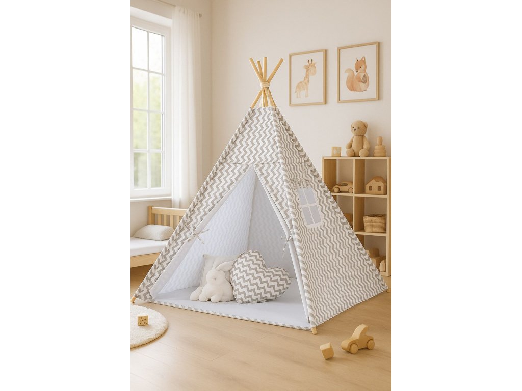 Stan teepee je multifunkční prostor, který roste spolu s dítětem