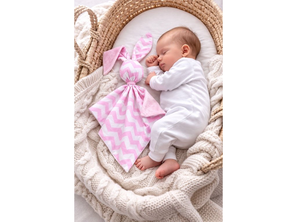 Usínáček Zajíček minky - Zig zag růžové/růžová