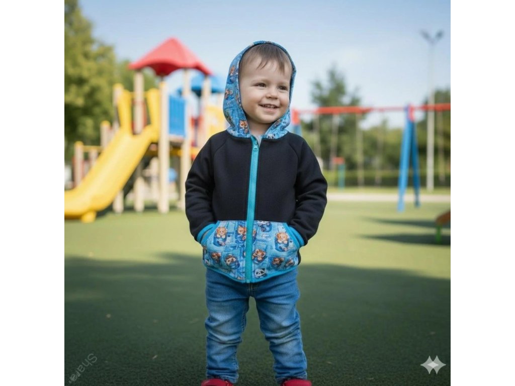Dětská mikina na zip počesaná - Černá/tygřík