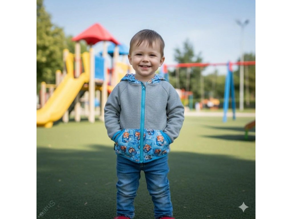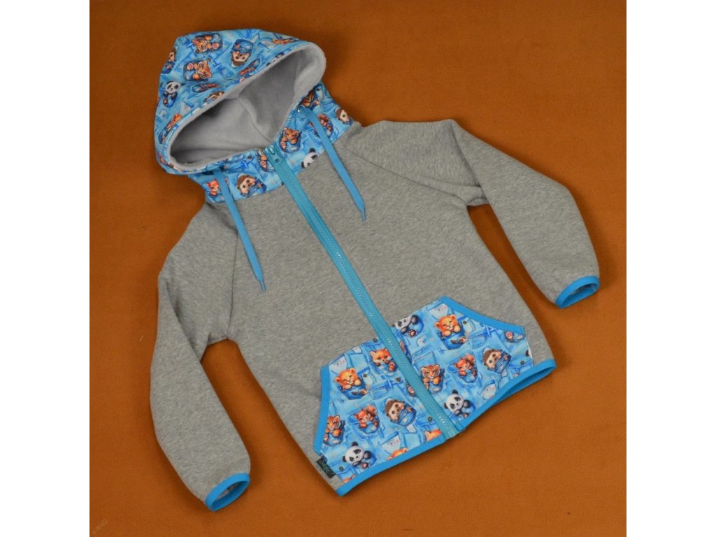 Dětská mikina na zip počesaná - Šedý melír/tygřík